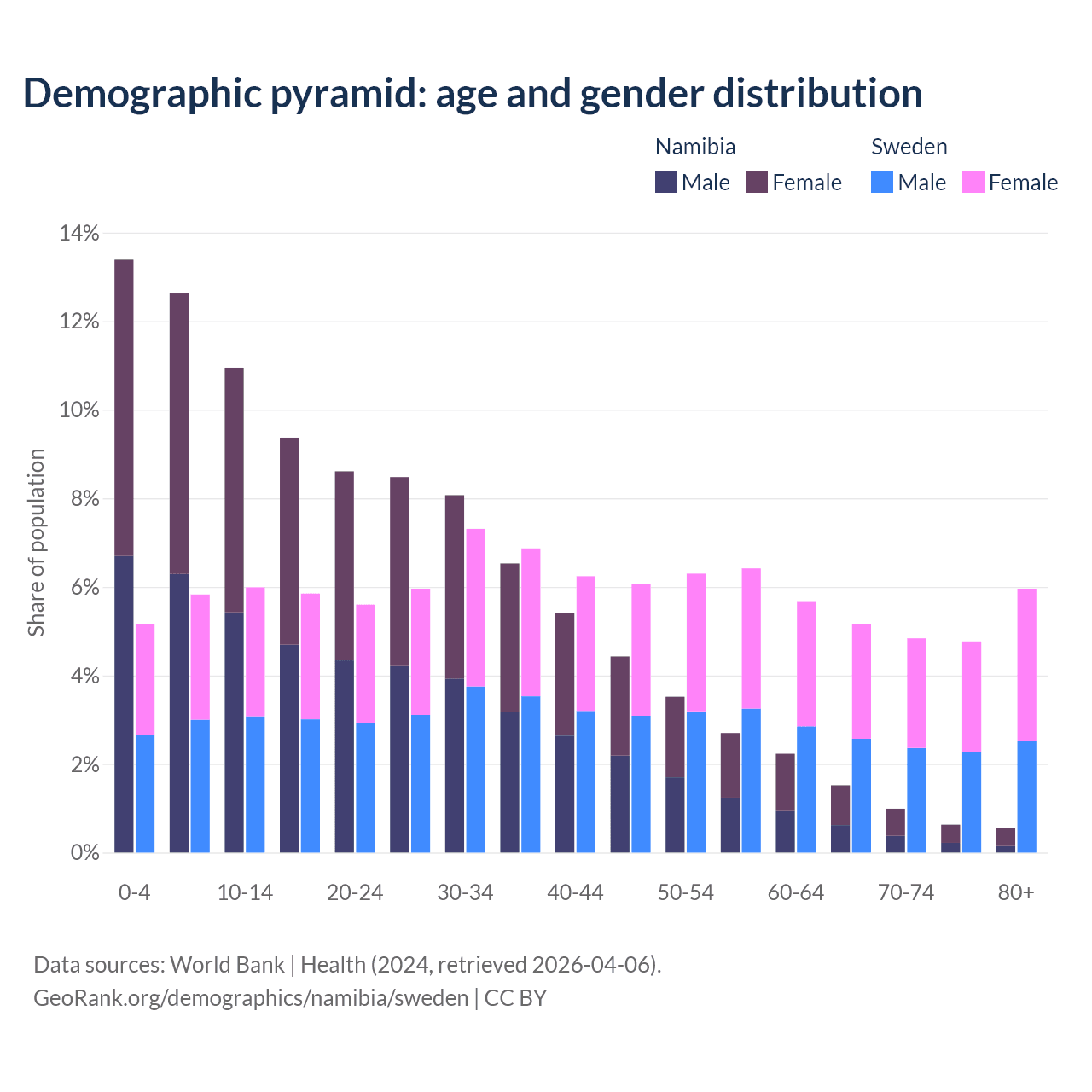 Demographics of Namibia compared to Sweden: