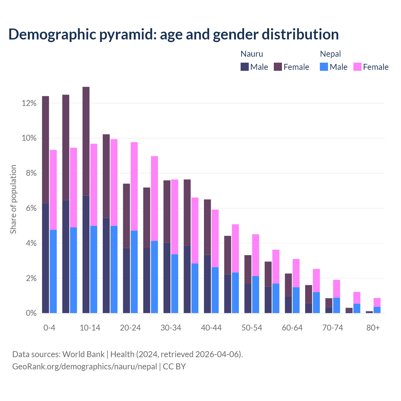 Demographics of Nauru compared to Nepal: