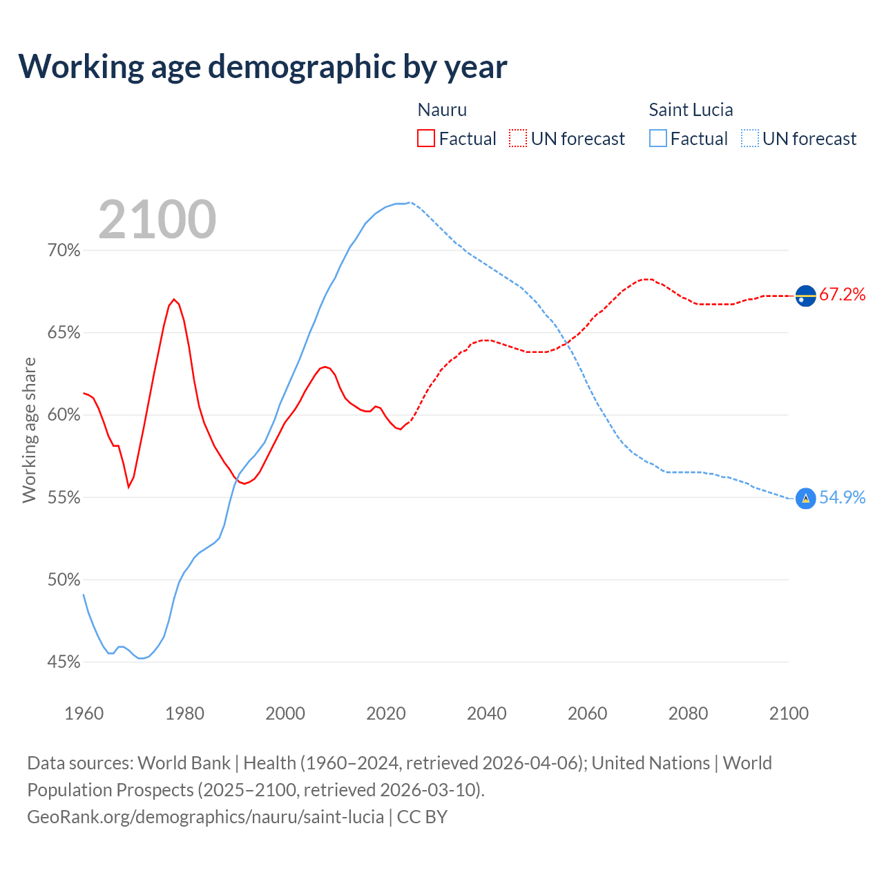 - Nauru has 7.2K working age adults (aged 15-64) vs 132K in Saint Lucia.