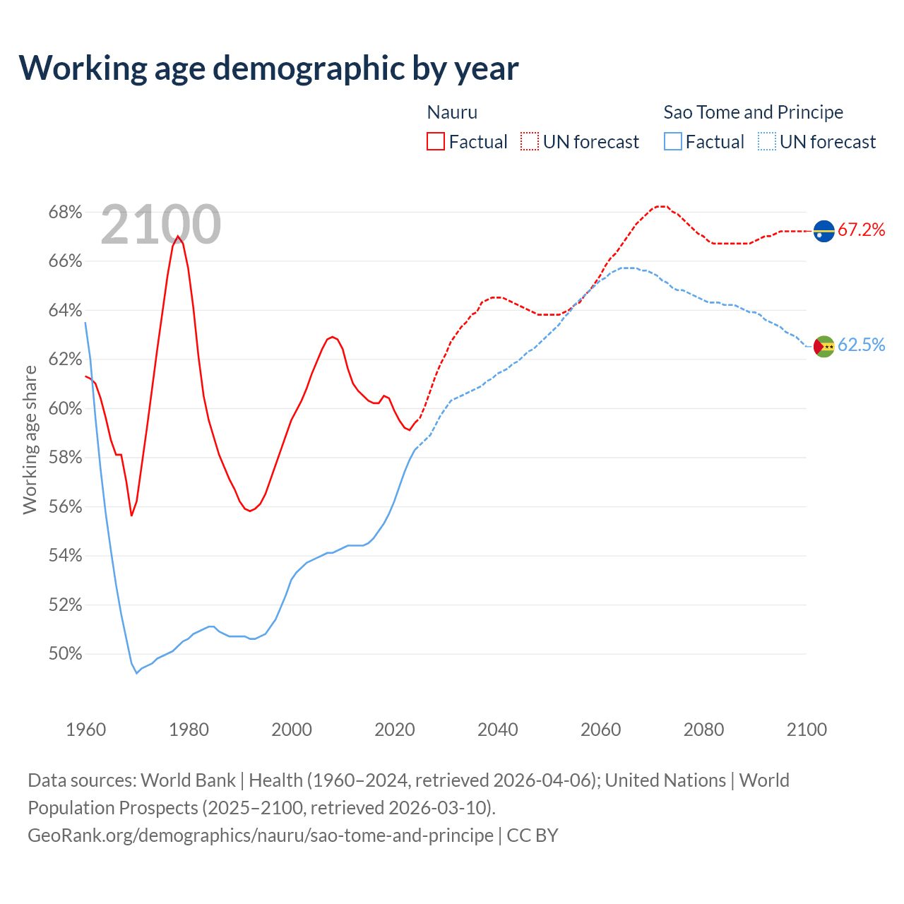 - Nauru has 7.2K working age adults (aged 15-64) vs 144K in Sao Tome and Principe.
