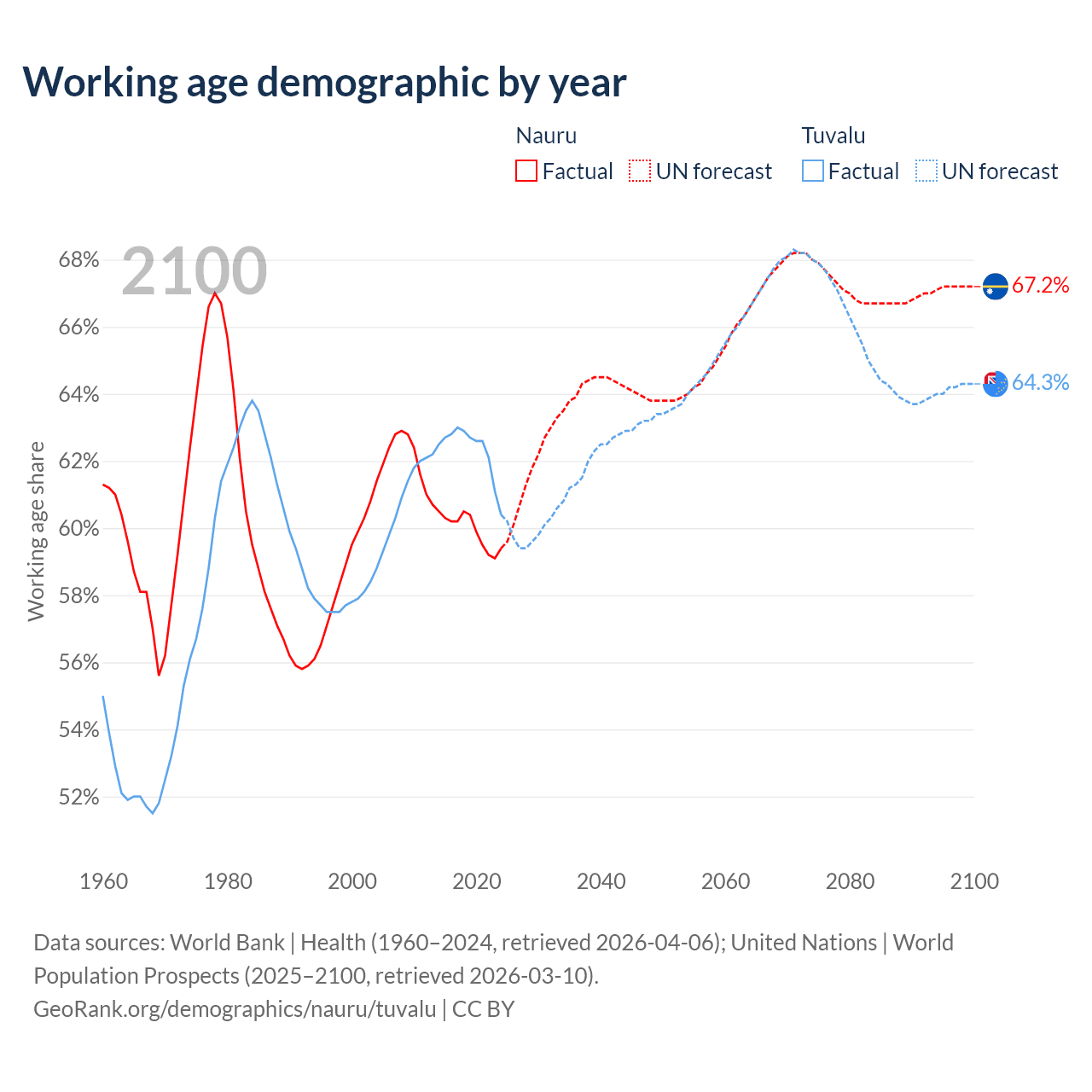 - Nauru has 7.2K working age adults (aged 15-64) vs 5.64K in Tuvalu.