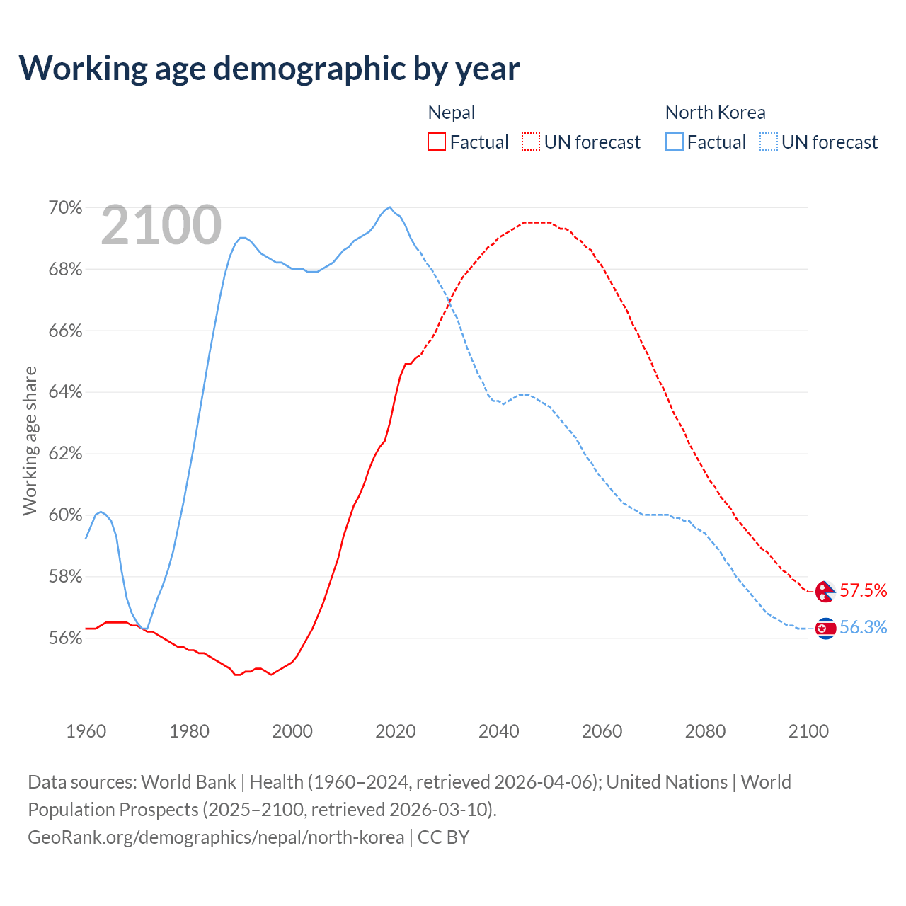 - Nepal has 19.3M working age adults (aged 15-64) vs 18.3M in North Korea.