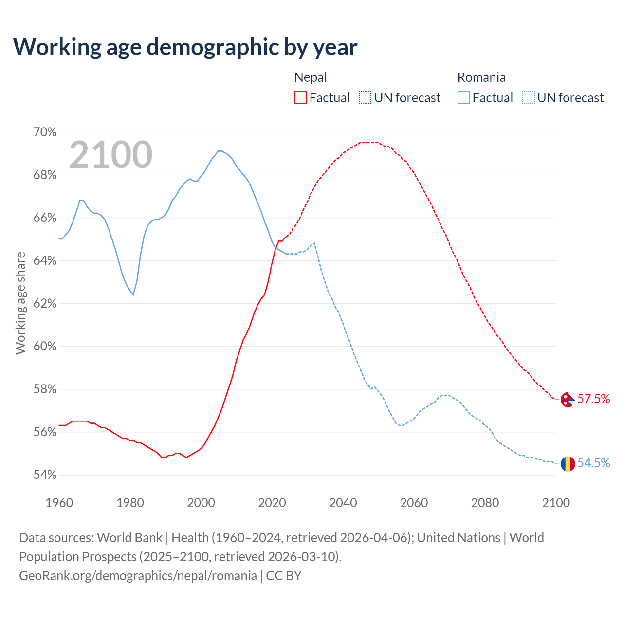 - Nepal has 19.3M working age adults (aged 15-64) vs 12.1M in Romania.