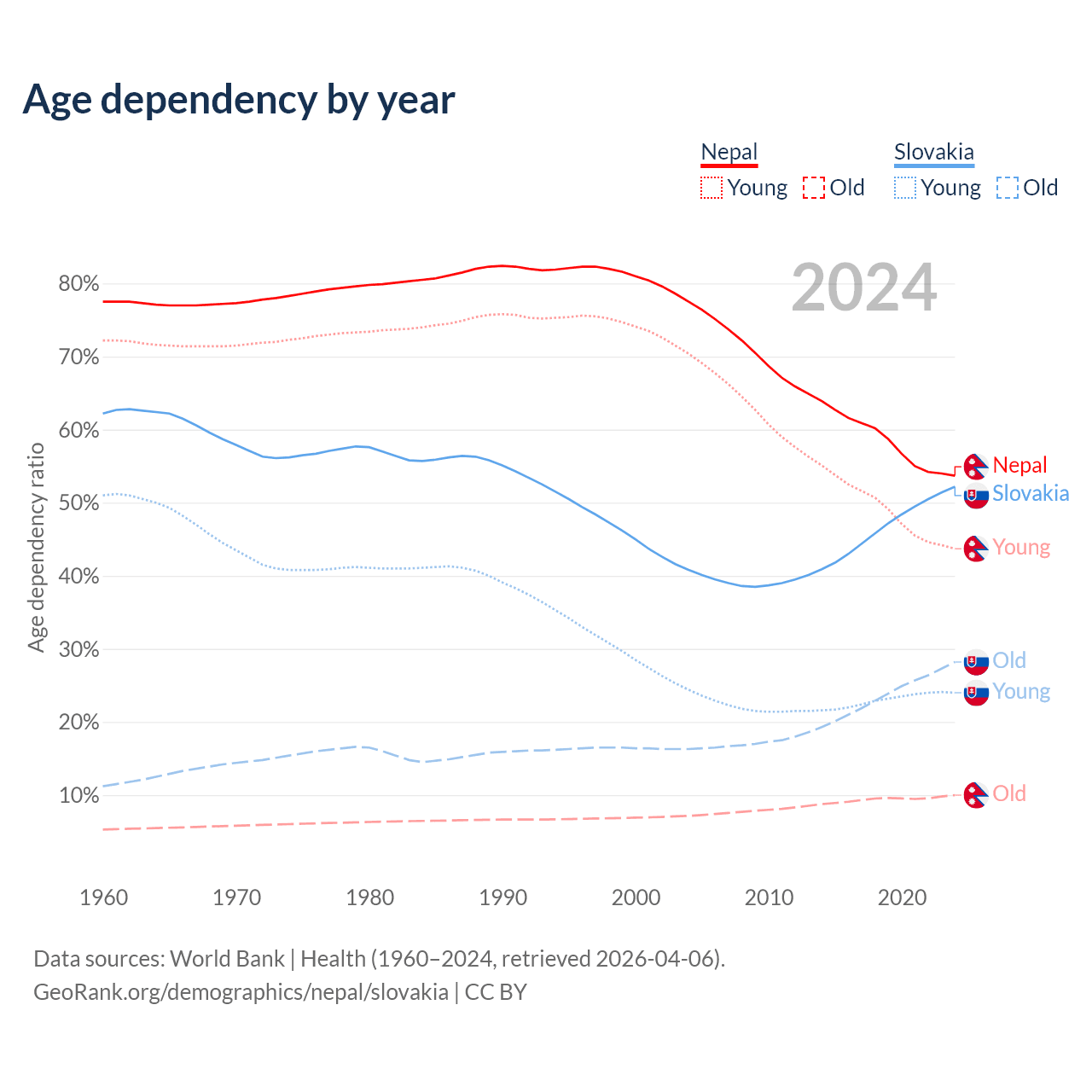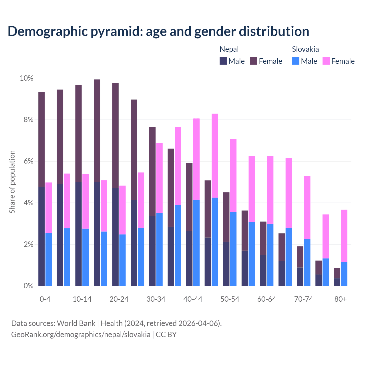 - Nepal is ranked 127/196 by median age (oldest to youngest) vs 31/196 for Slovakia.