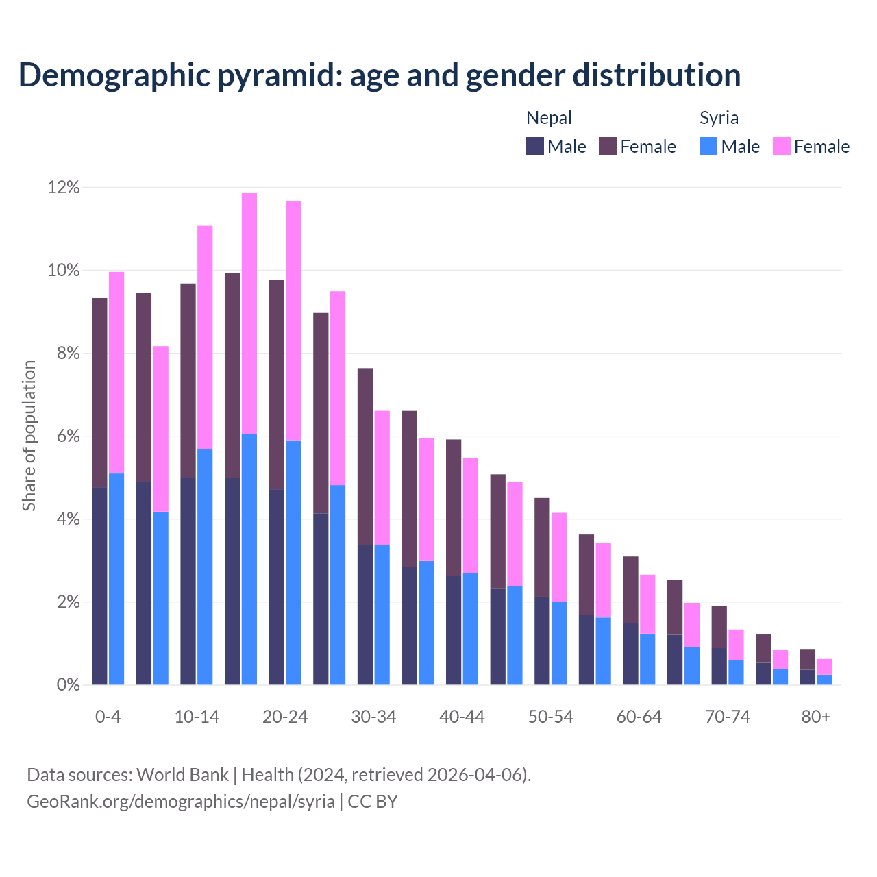 Demographics of Nepal compared to Syria: