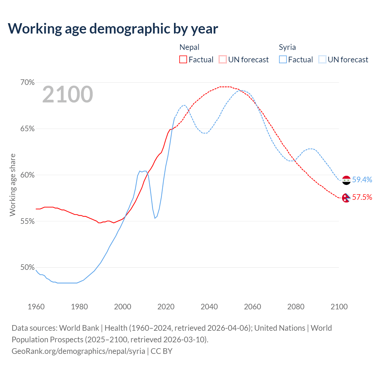 - Nepal has 19.3M working age adults (aged 15-64) vs 17.7M in Syria.