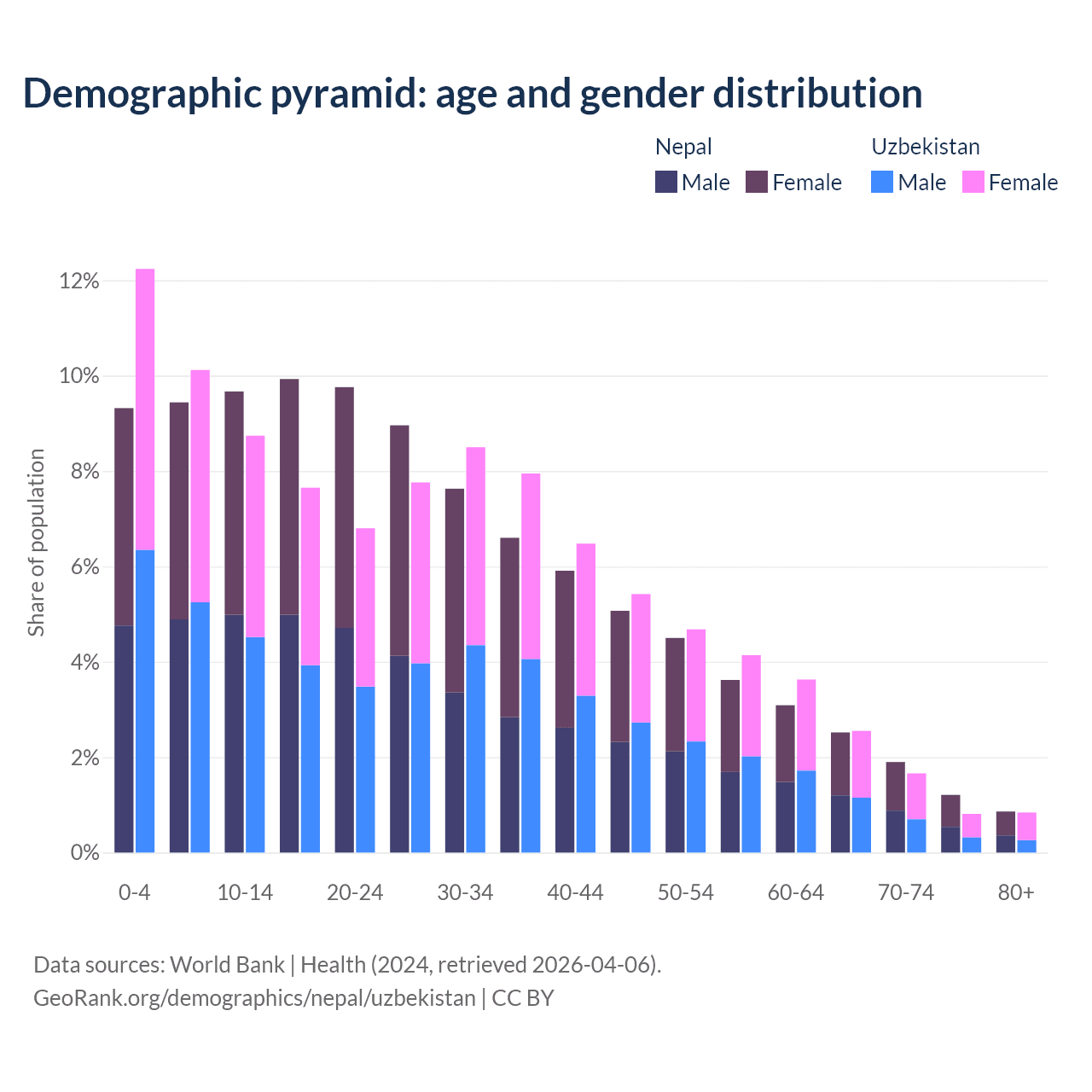 Demographics of Nepal compared to Uzbekistan: