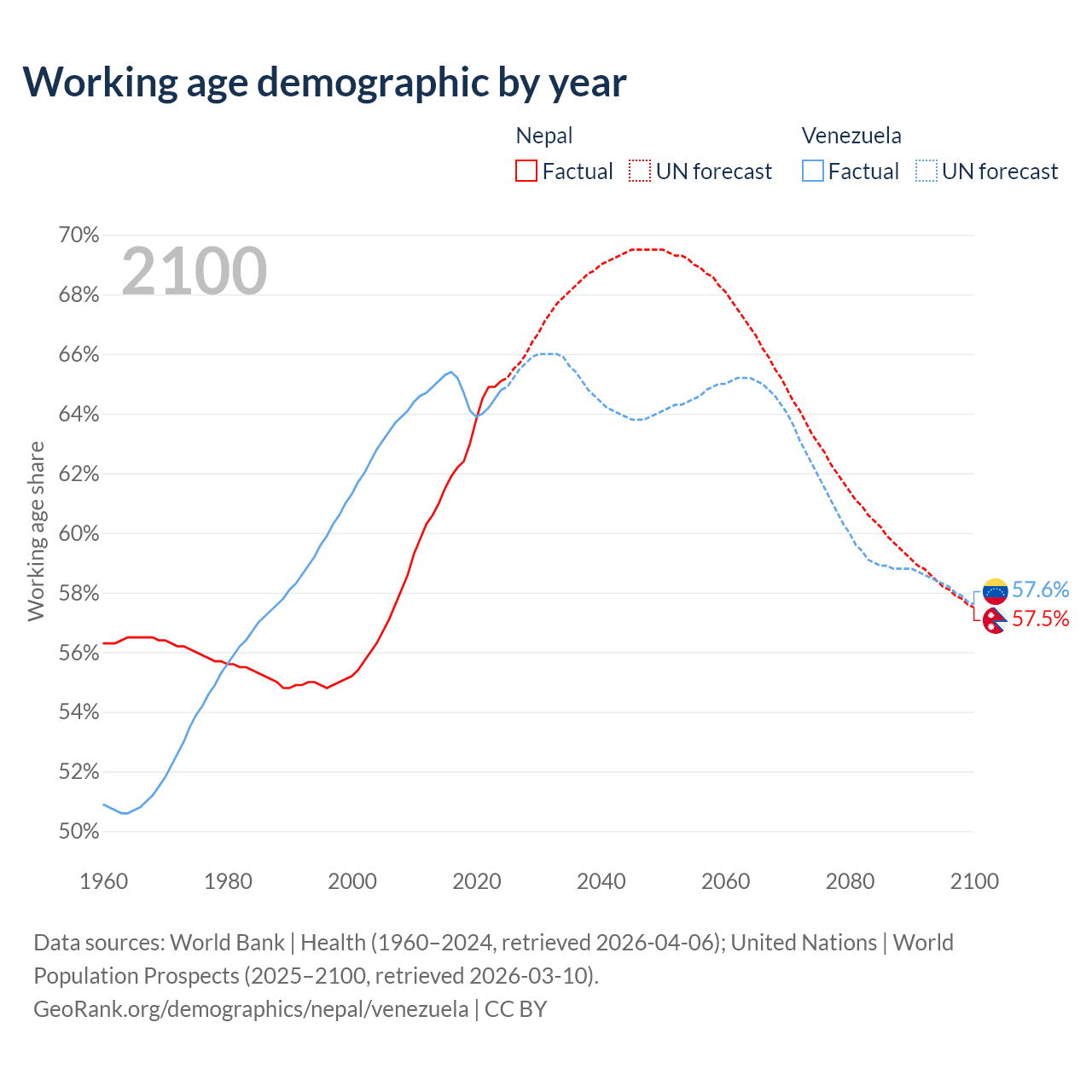 - Nepal has 19.3M working age adults (aged 15-64) vs 18.6M in Venezuela.