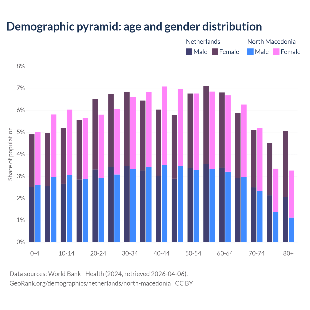 Demographics of the Netherlands compared to North Macedonia: