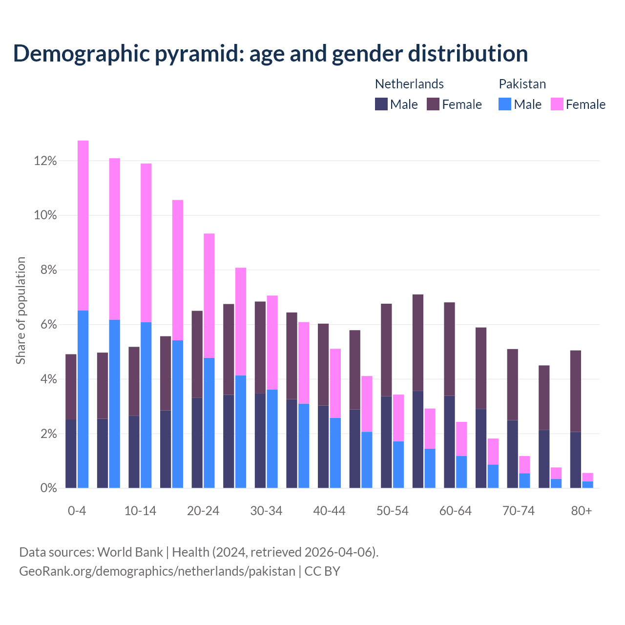 Demographics of the Netherlands compared to Pakistan: