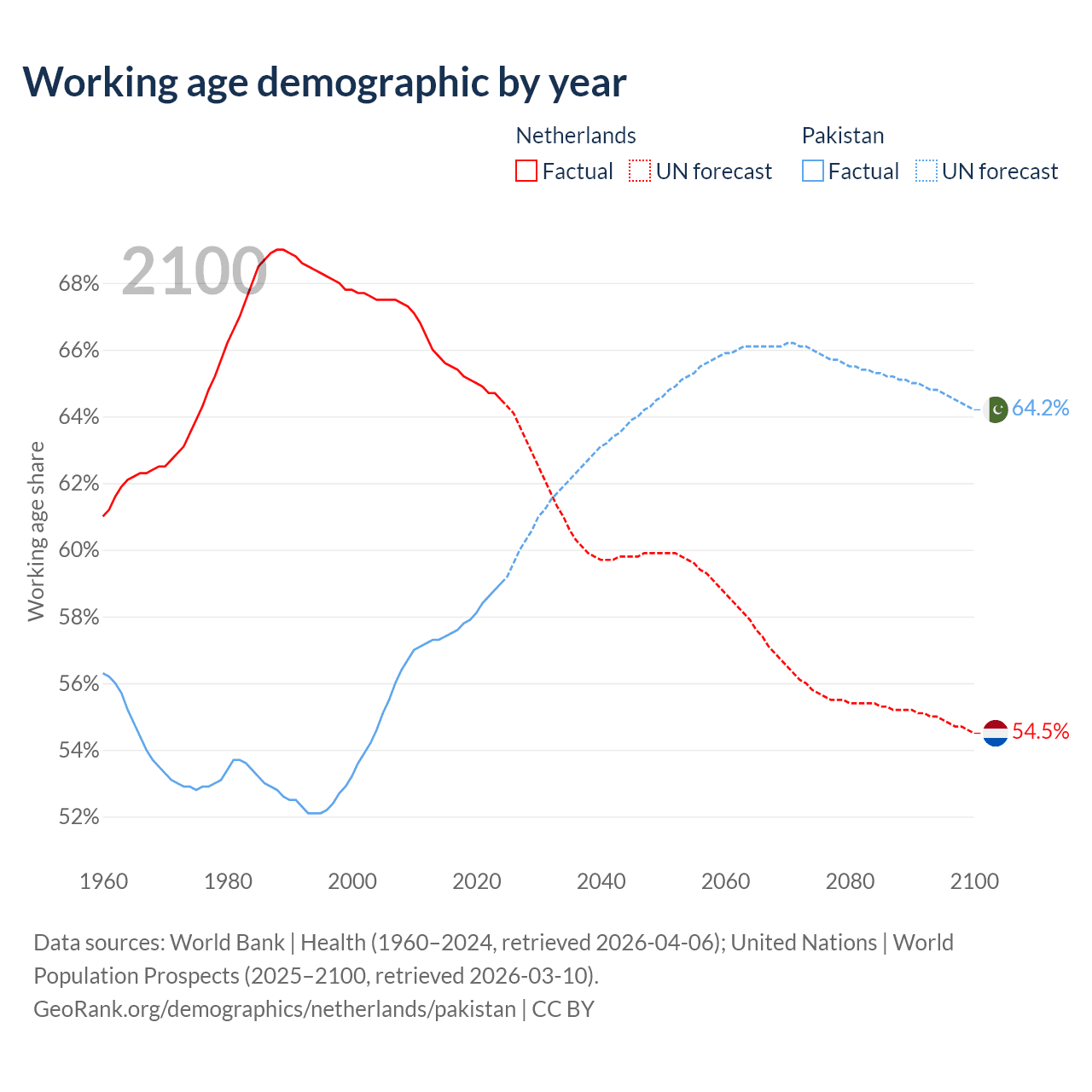 - The Netherlands has 11.8M working age adults (aged 15-64) vs 154M in Pakistan.
