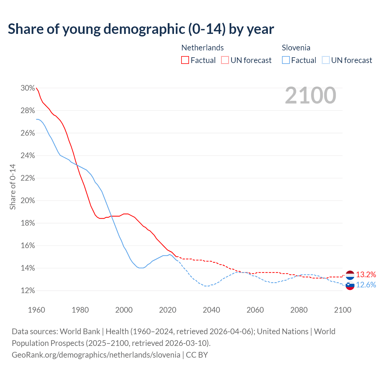 - The share of young demographic (0-15 years old) in the Netherlands is 15% vs 14.7% in Slovenia.