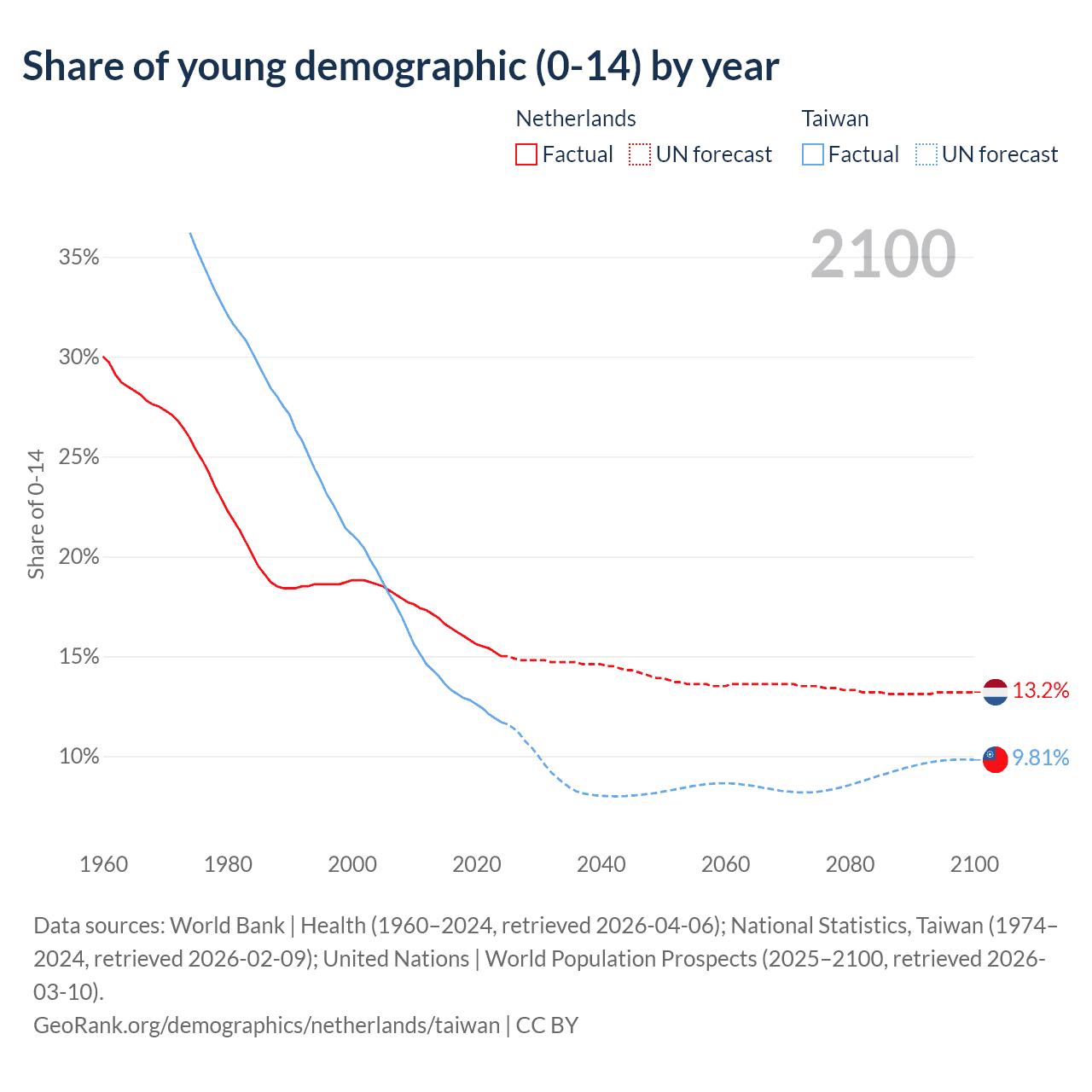 - The share of young demographic (0-15 years old) in the Netherlands is 15% vs 11.7% in Taiwan.