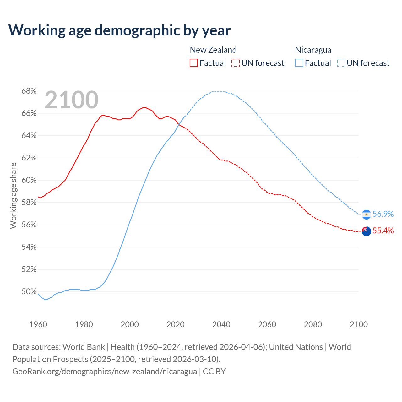 - New Zealand has 3.48M working age adults (aged 15-64) vs 4.68M in Nicaragua.