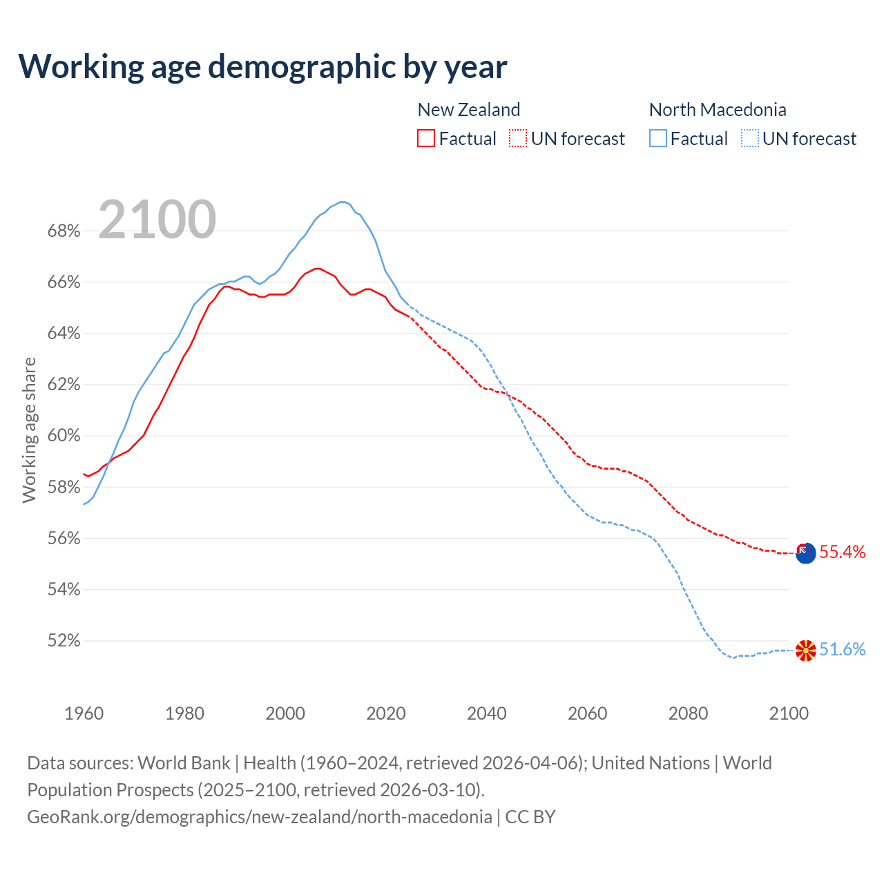 - New Zealand has 3.48M working age adults (aged 15-64) vs 1.18M in North Macedonia.