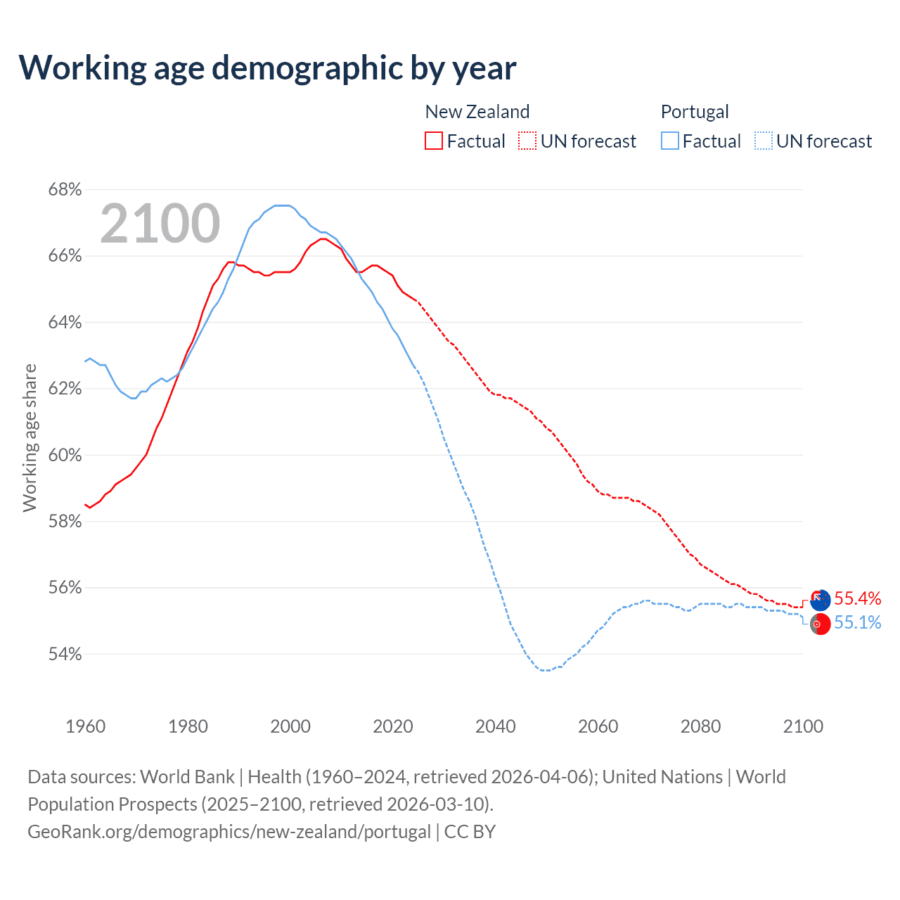 - New Zealand has 3.48M working age adults (aged 15-64) vs 6.68M in Portugal.