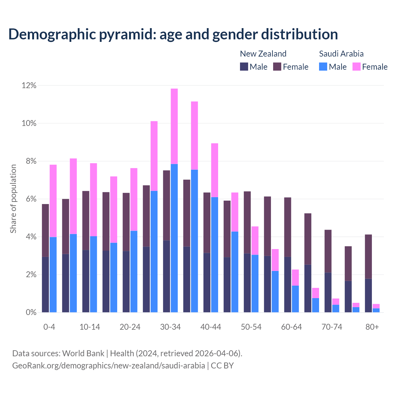 Demographics of New Zealand compared to Saudi Arabia: