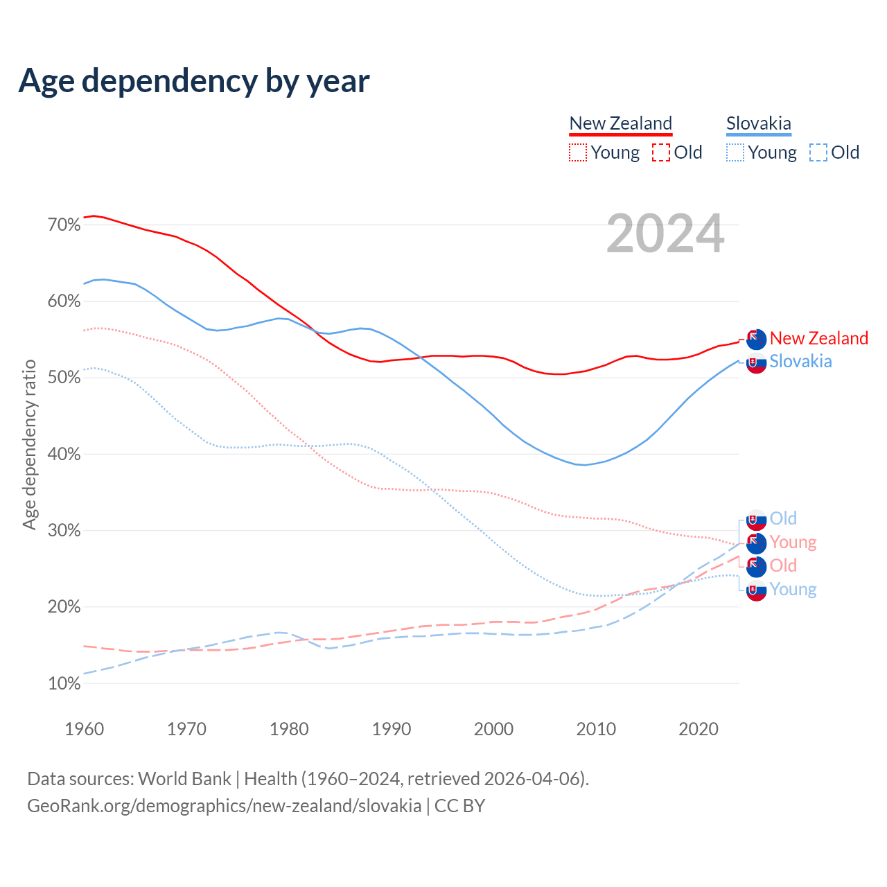 - New Zealand is ranked 56/196 by median age (oldest to youngest) vs 31/196 for Slovakia.