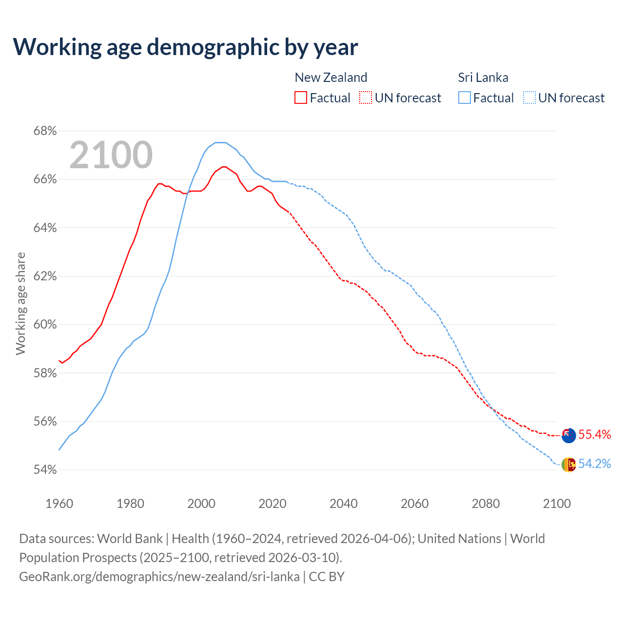 - New Zealand has 3.48M working age adults (aged 15-64) vs 14.6M in Sri Lanka.