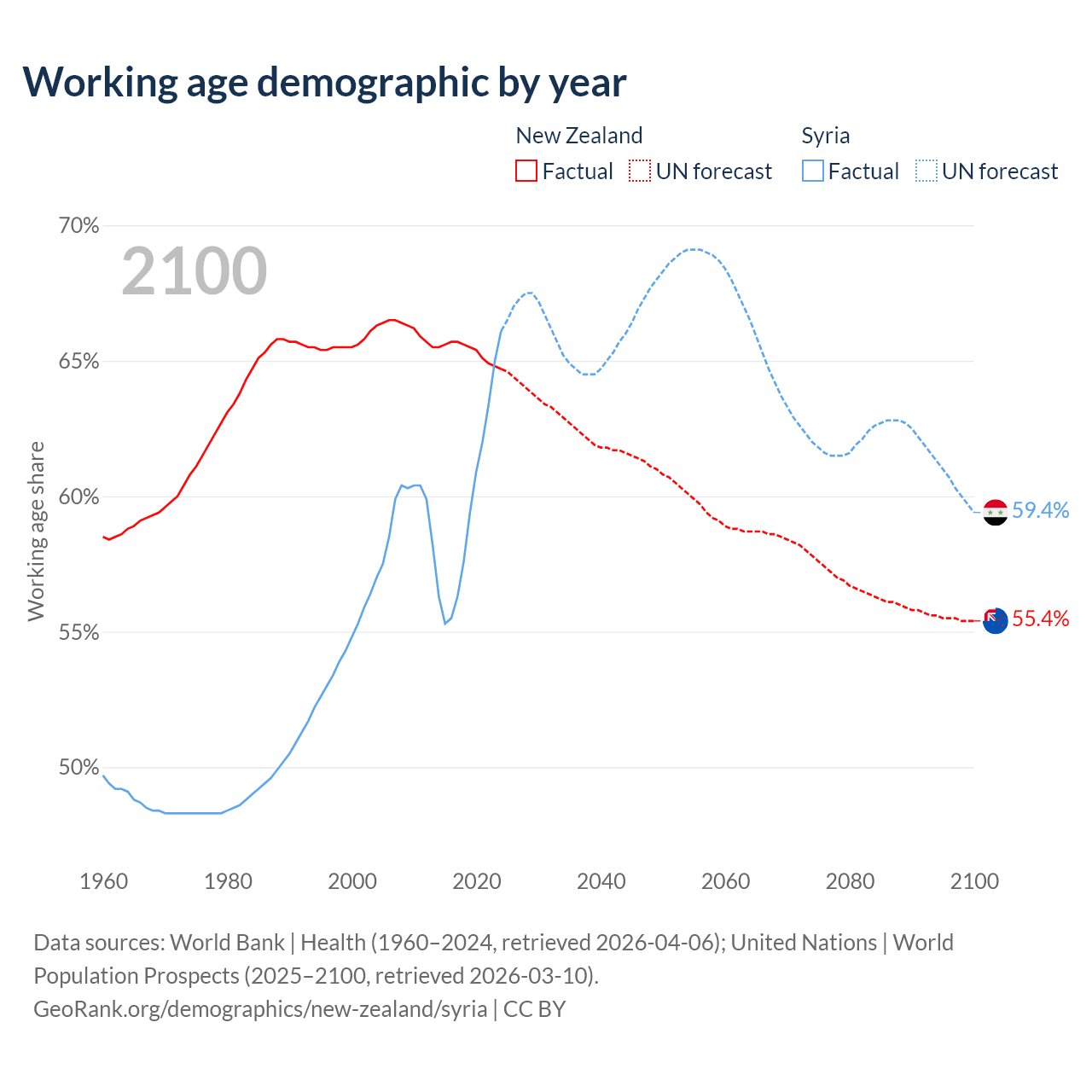 - New Zealand has 3.48M working age adults (aged 15-64) vs 17.7M in Syria.