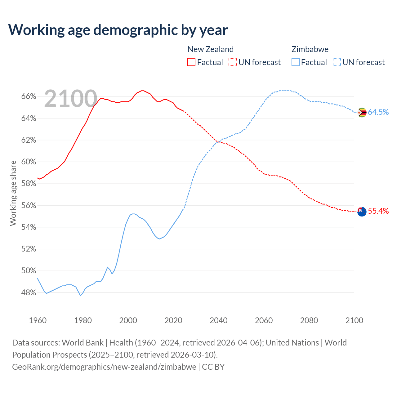 - New Zealand has 3.48M working age adults (aged 15-64) vs 9.64M in Zimbabwe.