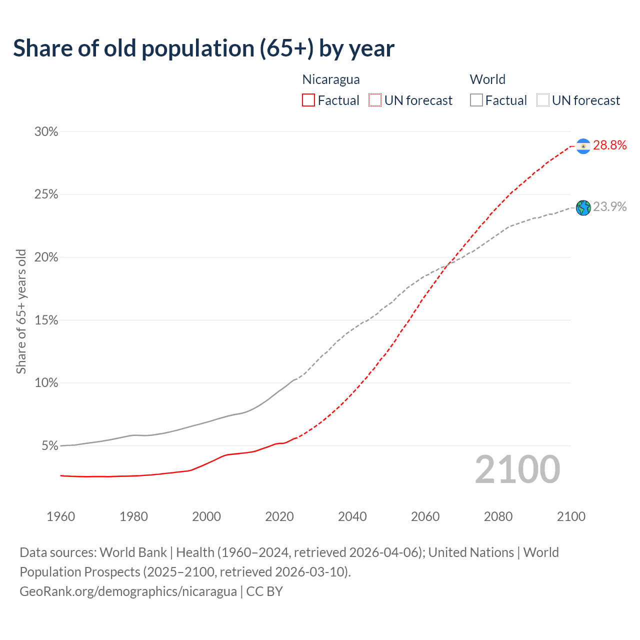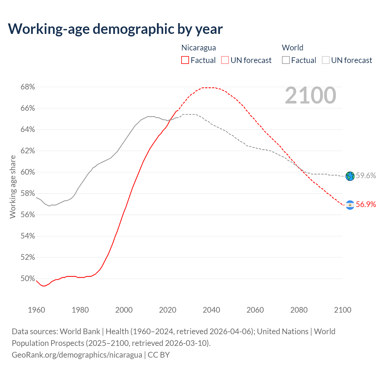 Median age in Nicaragua, 1960–2100