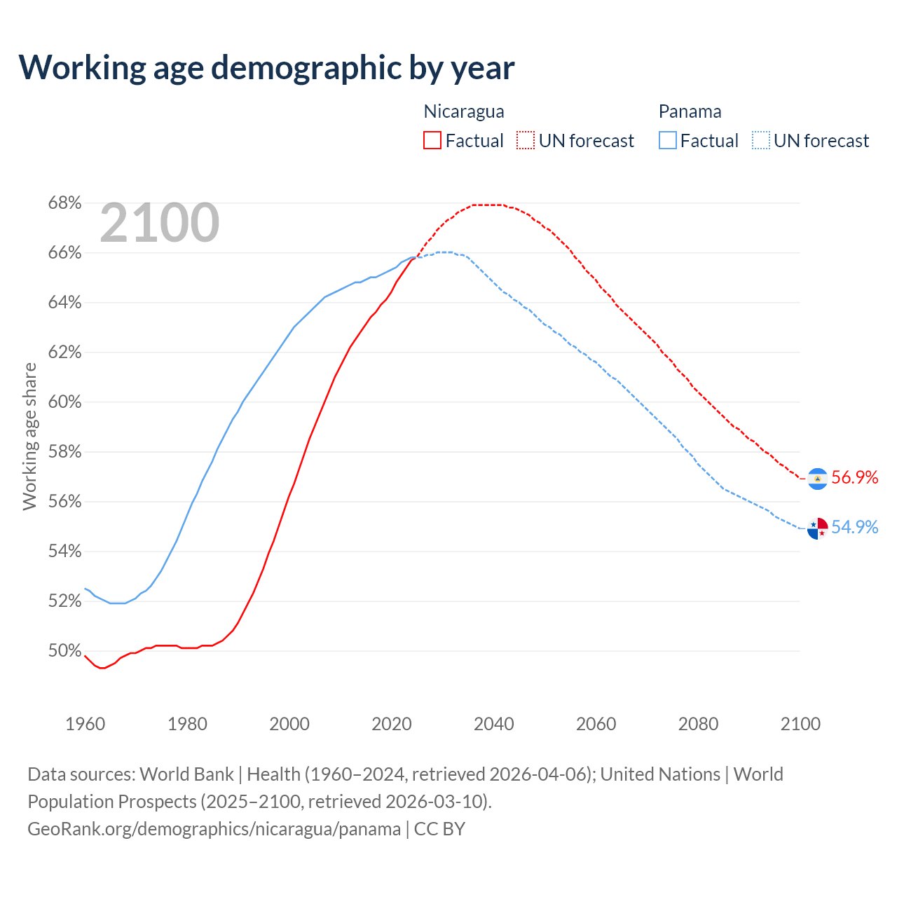- Nicaragua has 4.68M working age adults (aged 15-64) vs 3.05M in Panama.