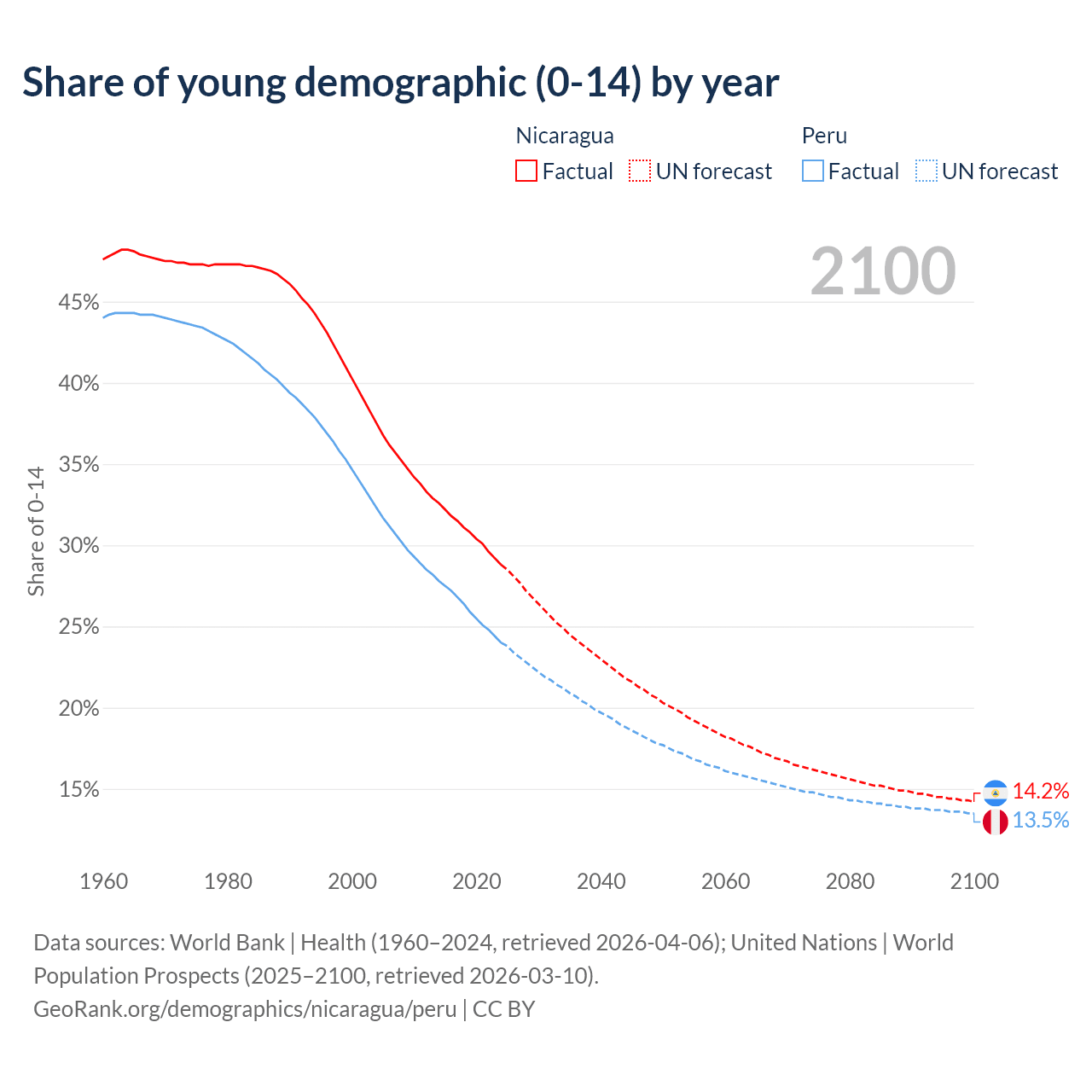 - The total fertility rate is 2.22 in Nicaragua compared to 1.98 in Peru.