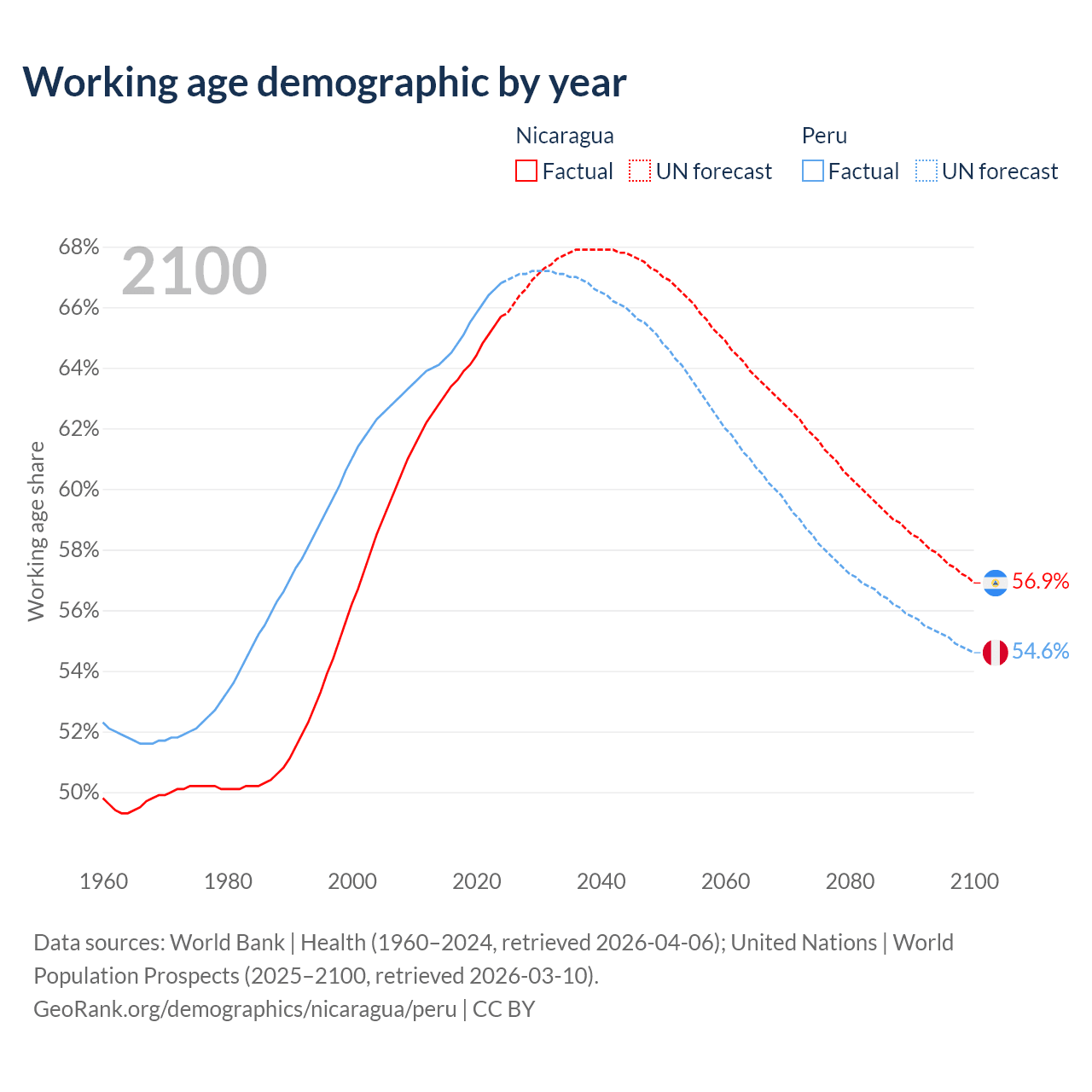 - Nicaragua has 4.68M working age adults (aged 15-64) vs 23.4M in Peru.
