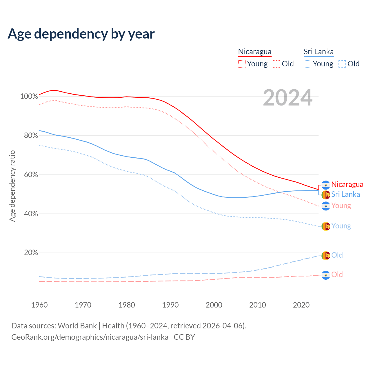 - The share of old-age demographic (65+) in Nicaragua is 5.53% vs 12.1% in Sri Lanka.