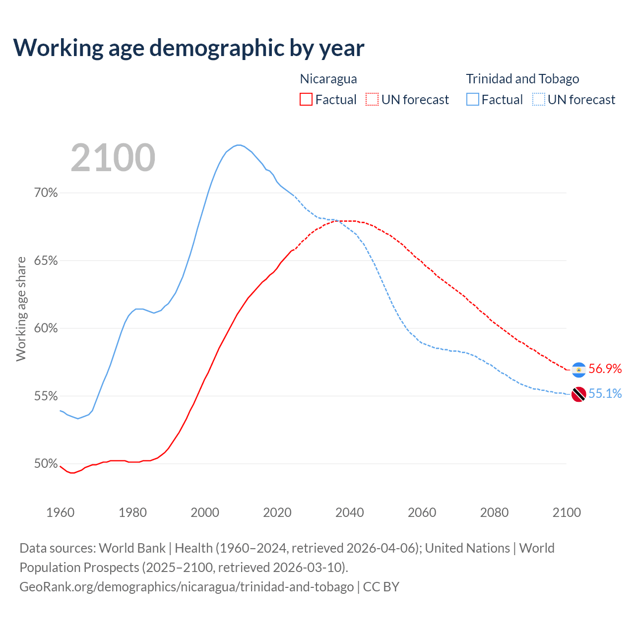 - Nicaragua has 4.68M working age adults (aged 15-64) vs 960K in Trinidad and Tobago.