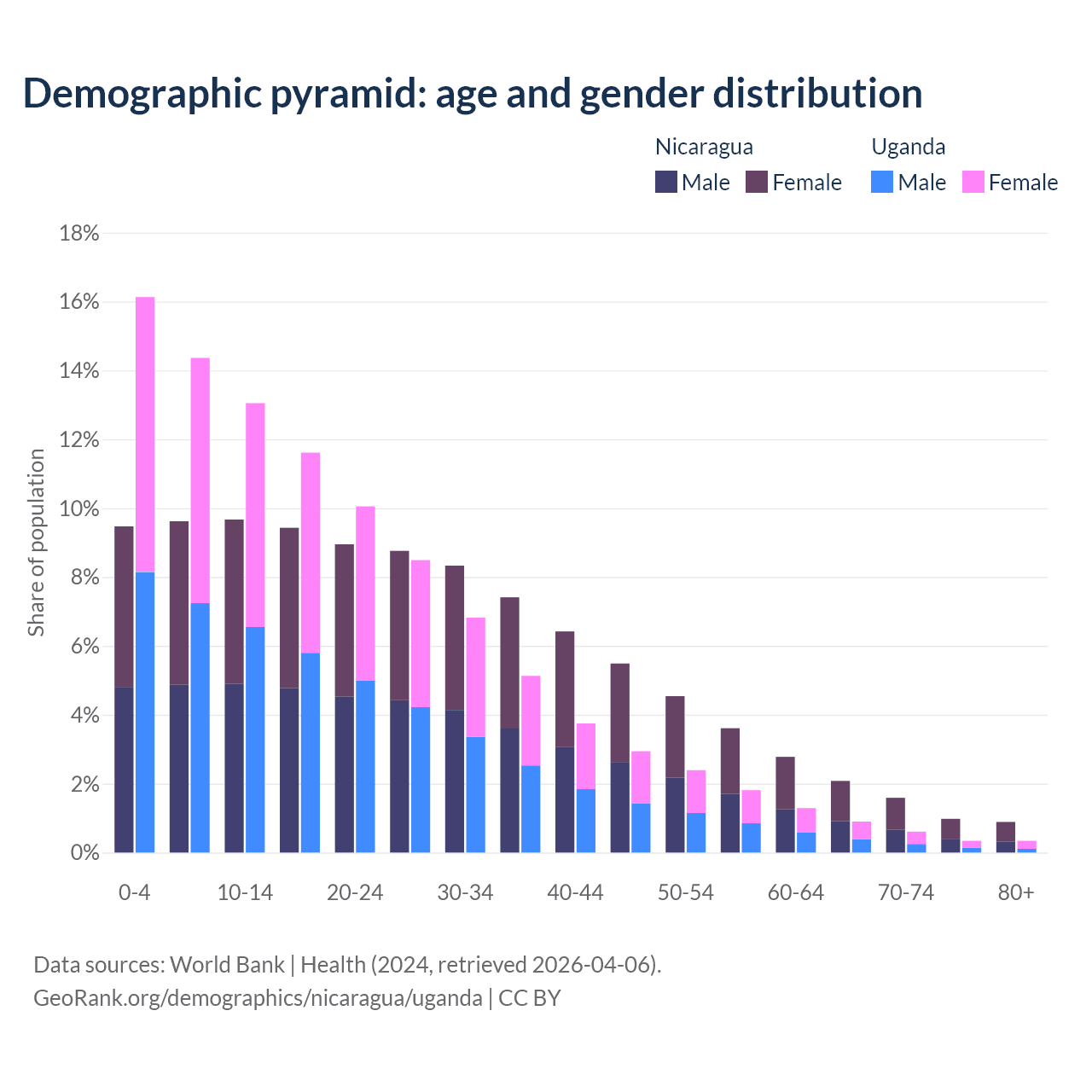 Demographics of Nicaragua compared to Uganda: