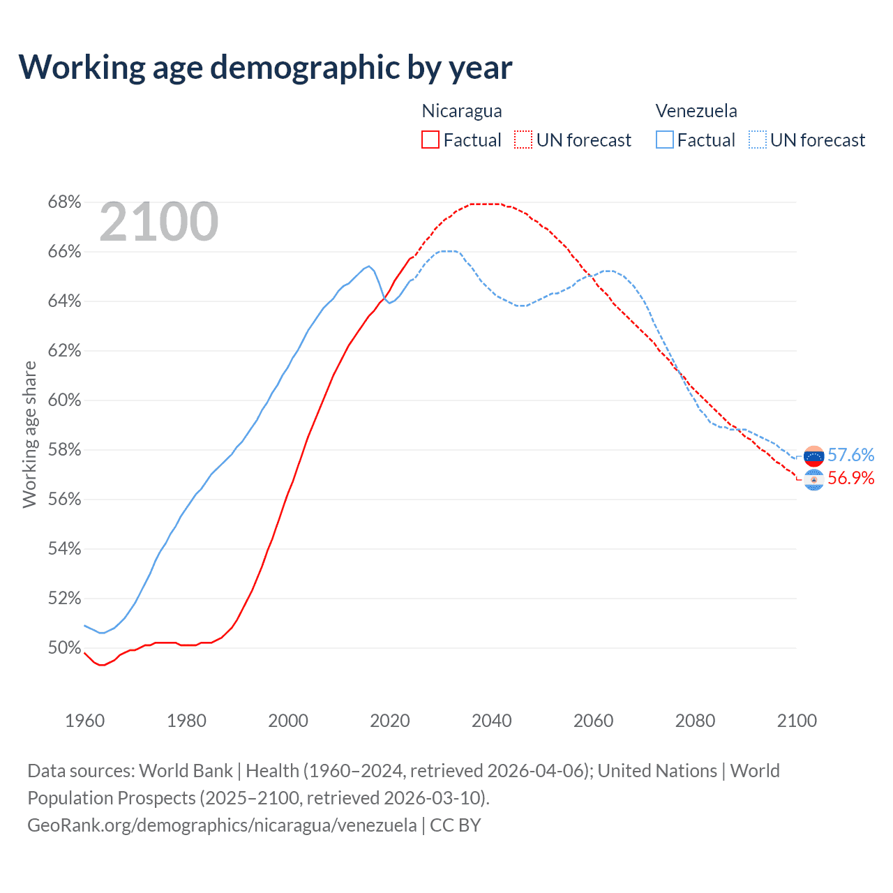 - Nicaragua has 4.68M working age adults (aged 15-64) vs 18.6M in Venezuela.