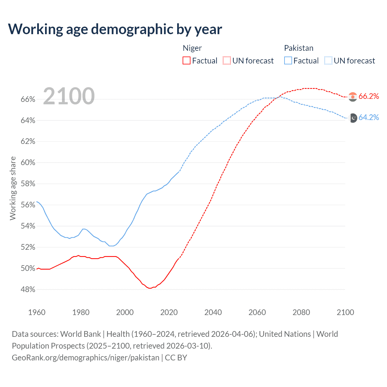 - Niger has 14.8M working age adults (aged 15-64) vs 154M in Pakistan.