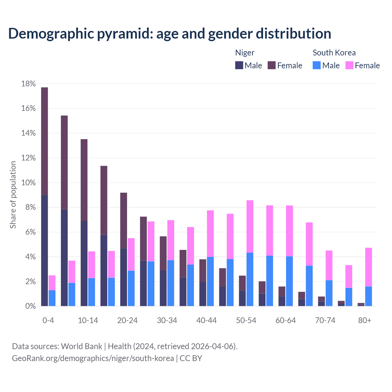 Demographics of Niger compared to South Korea: