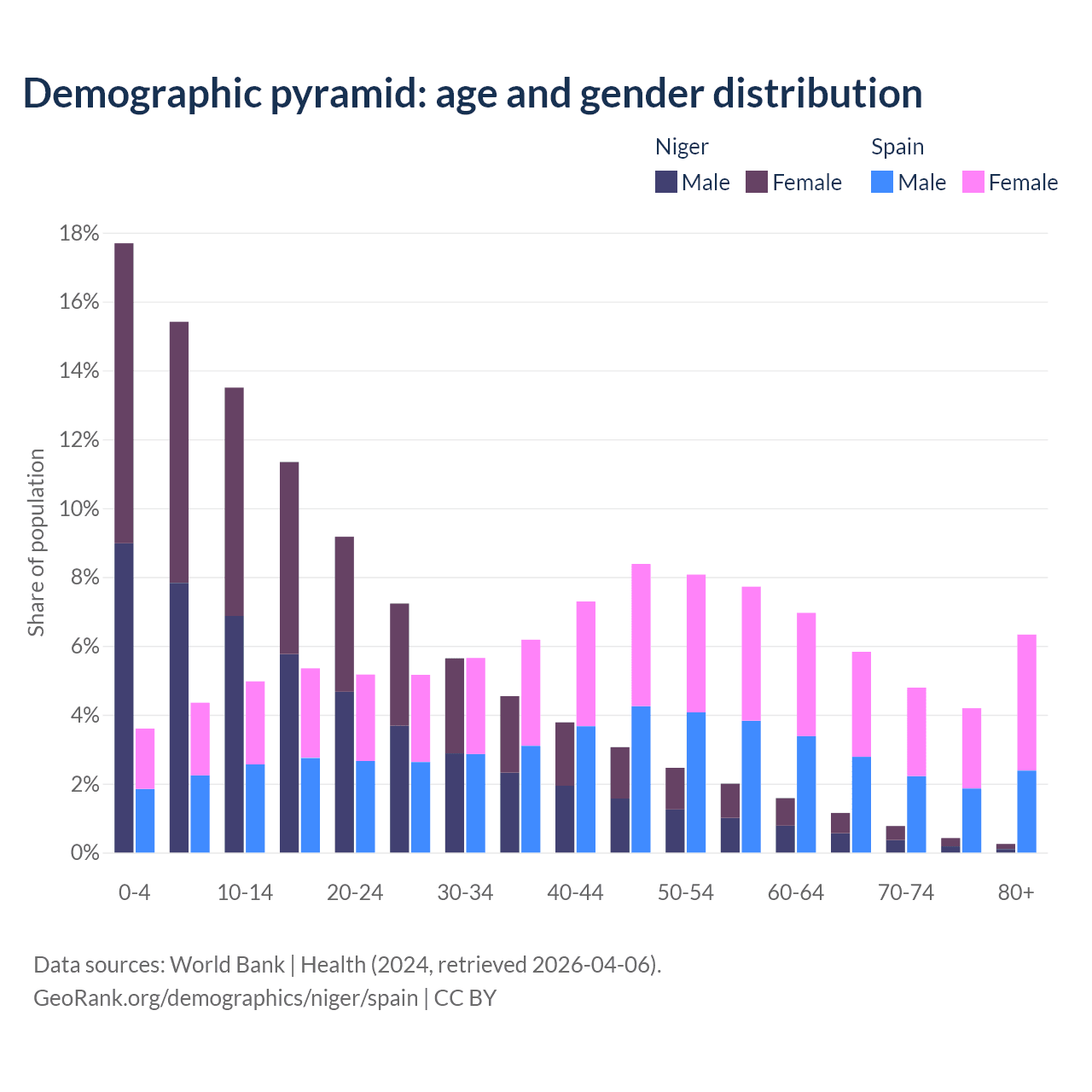 Demographics of Niger compared to Spain: