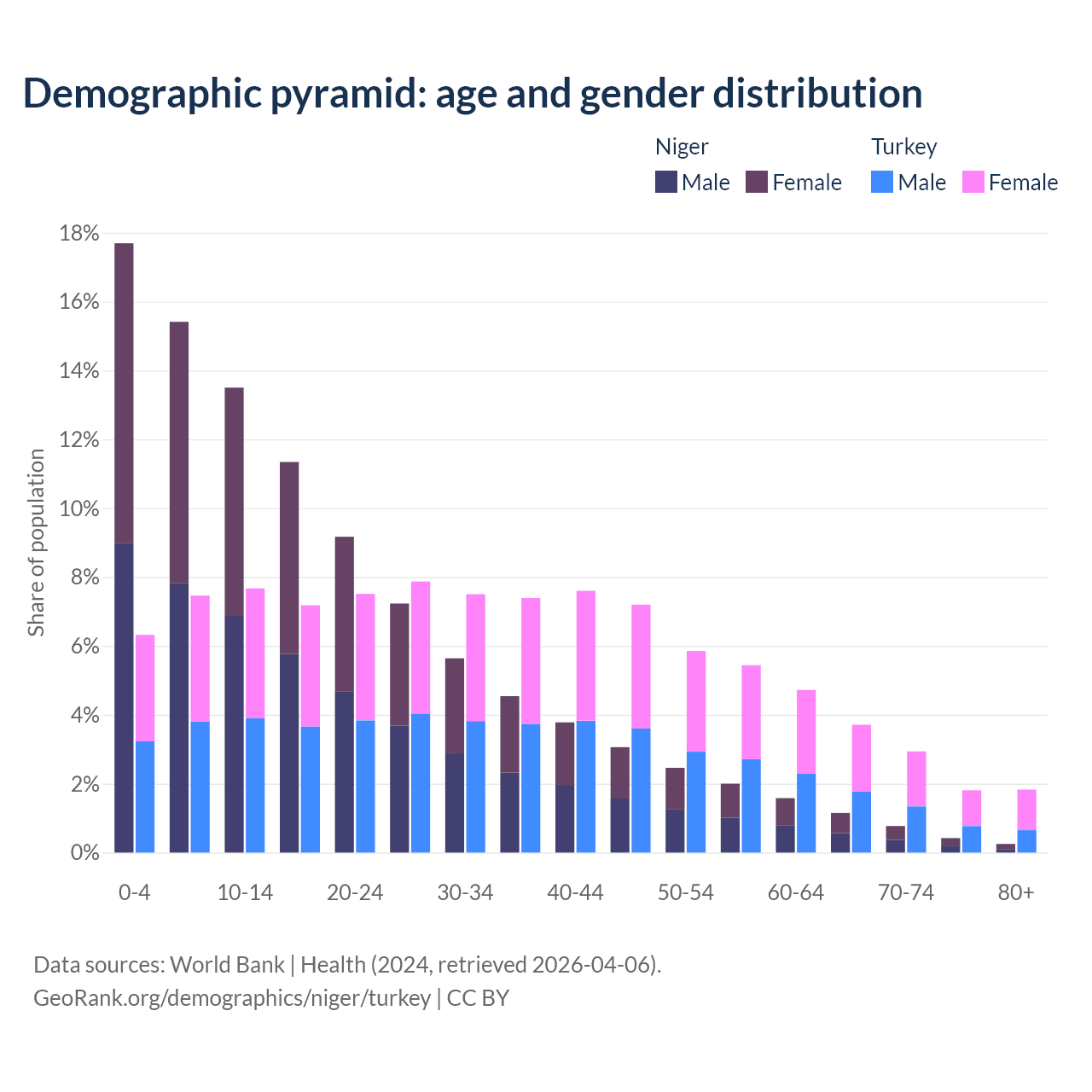 Demographics of Niger compared to Turkey: