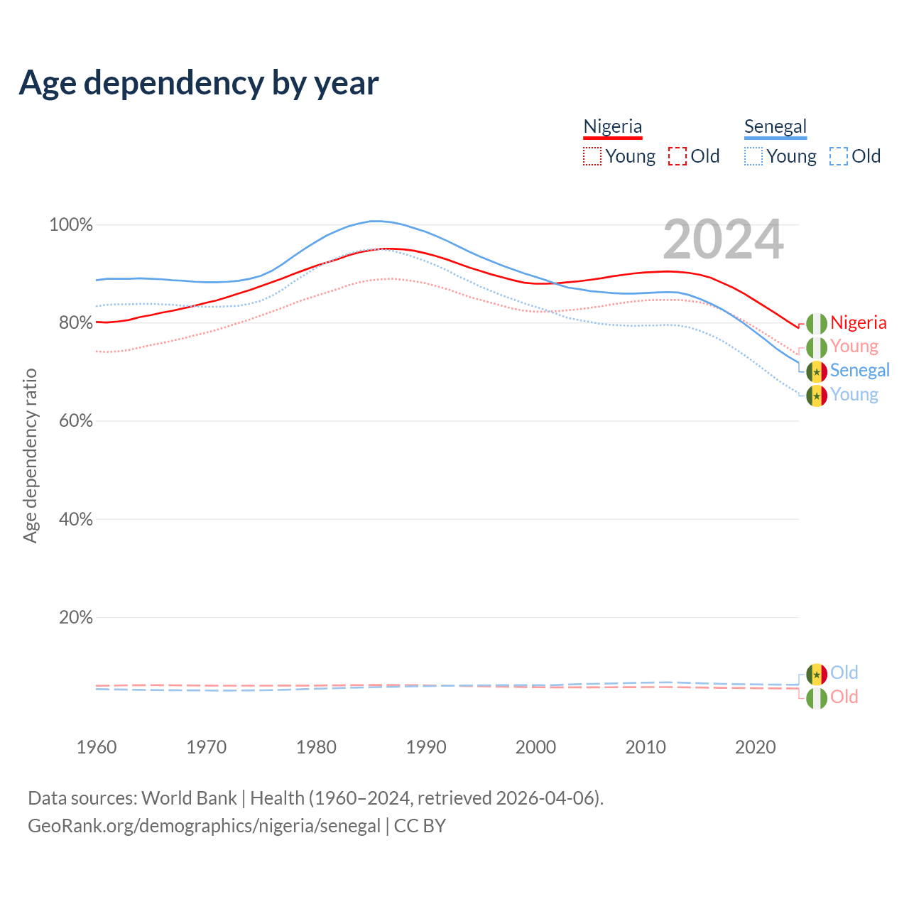- Nigeria is ranked 178/196 by median age (oldest to youngest) vs 162/196 for Senegal.