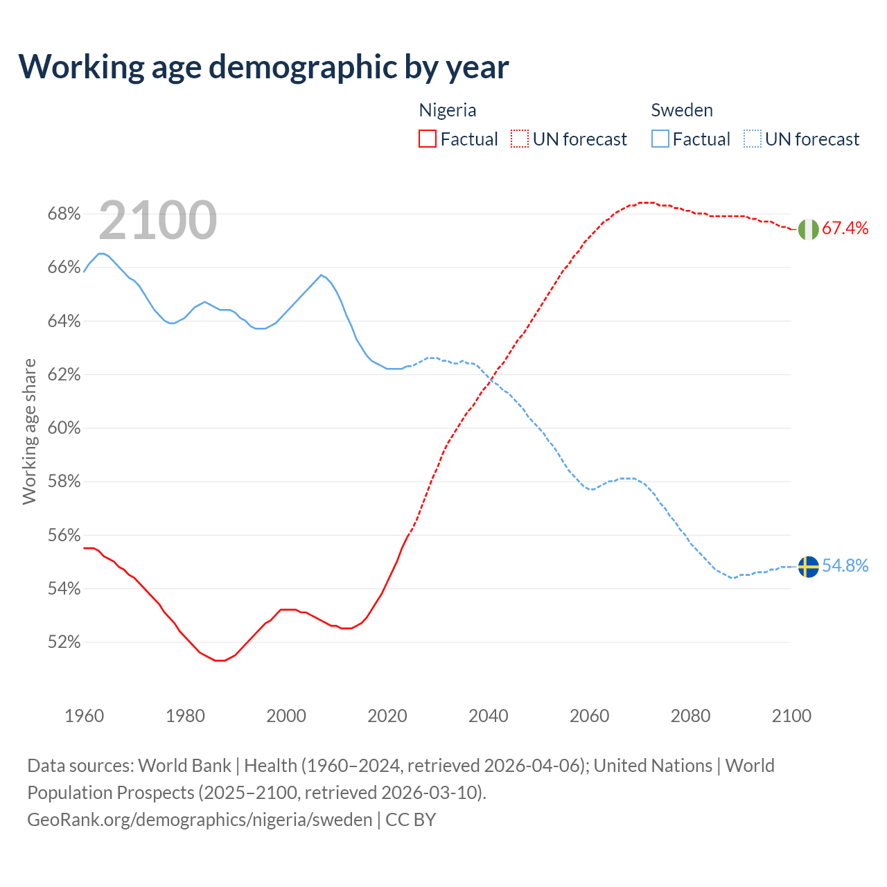 - Nigeria has 136M working age adults (aged 15-64) vs 6.65M in Sweden.
