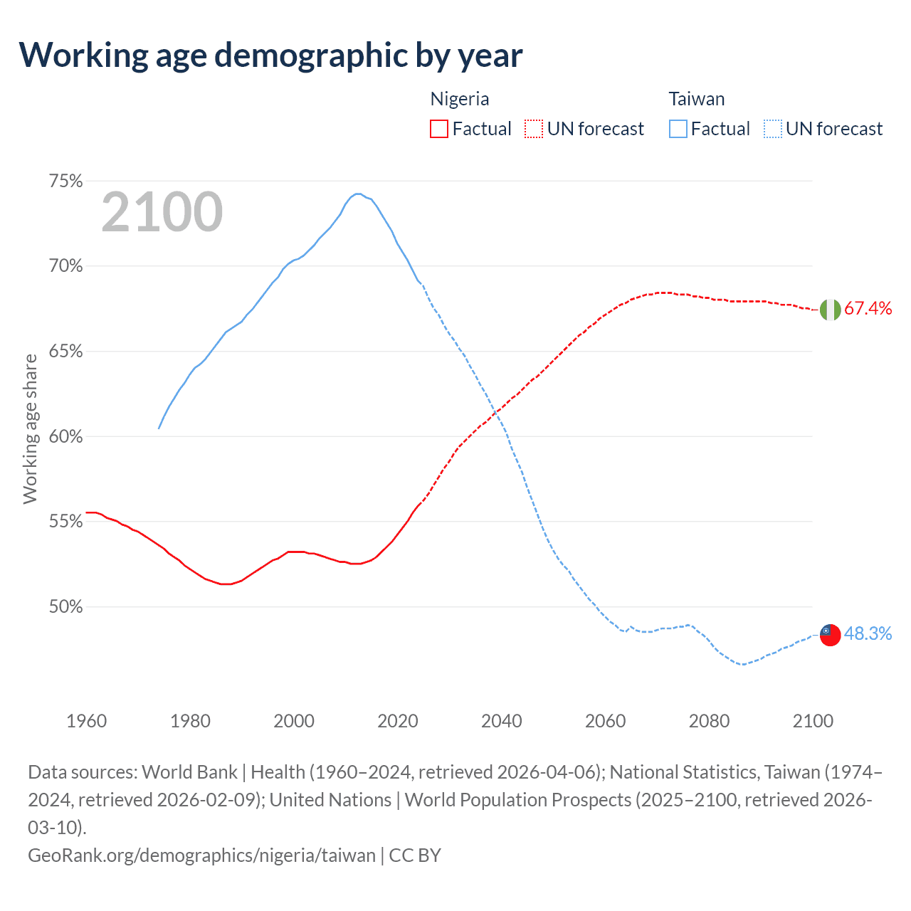 - Nigeria has 136M working age adults (aged 15-64) vs 16.1M in Taiwan.