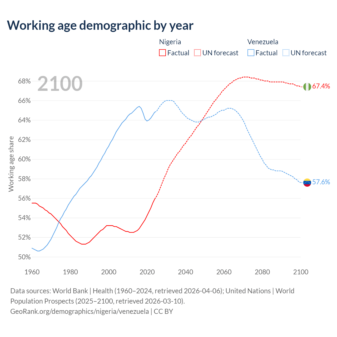 - Nigeria has 136M working age adults (aged 15-64) vs 18.6M in Venezuela.