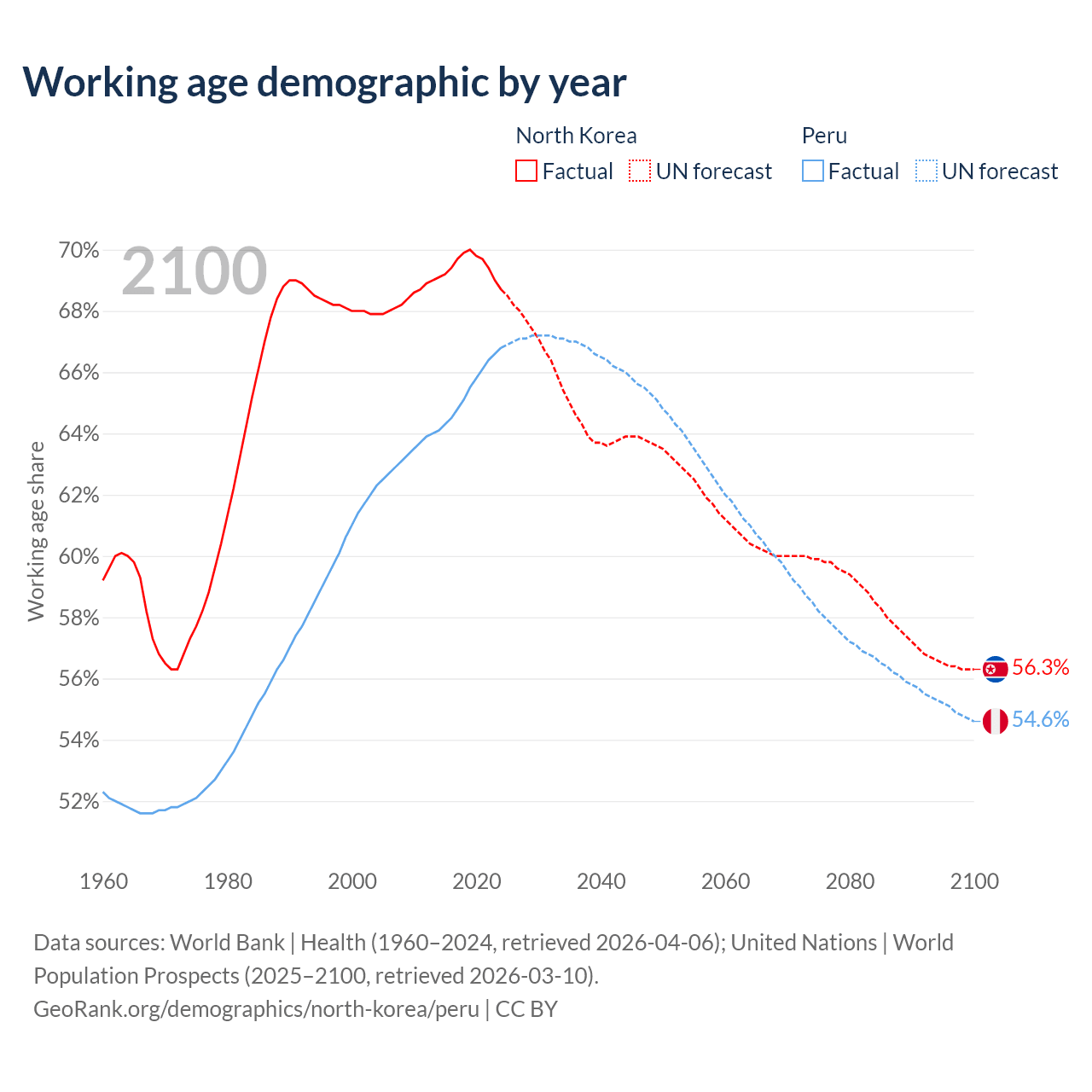 - North Korea has 18.3M working age adults (aged 15-64) vs 23.4M in Peru.