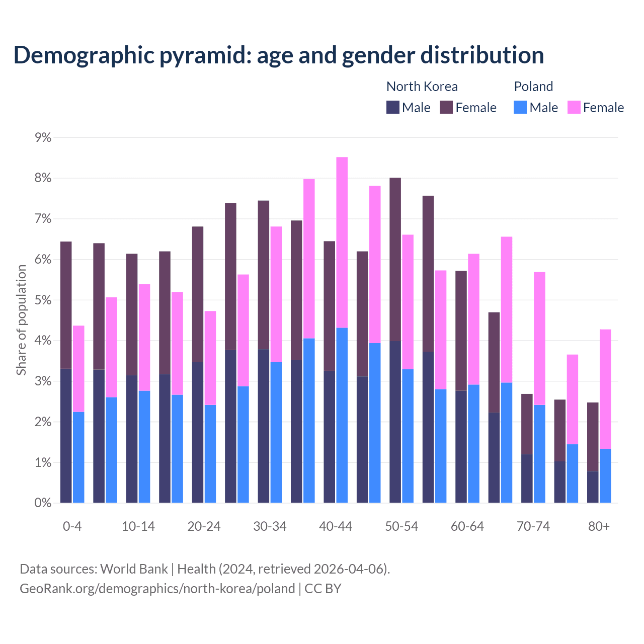 Demographics of North Korea compared to Poland: