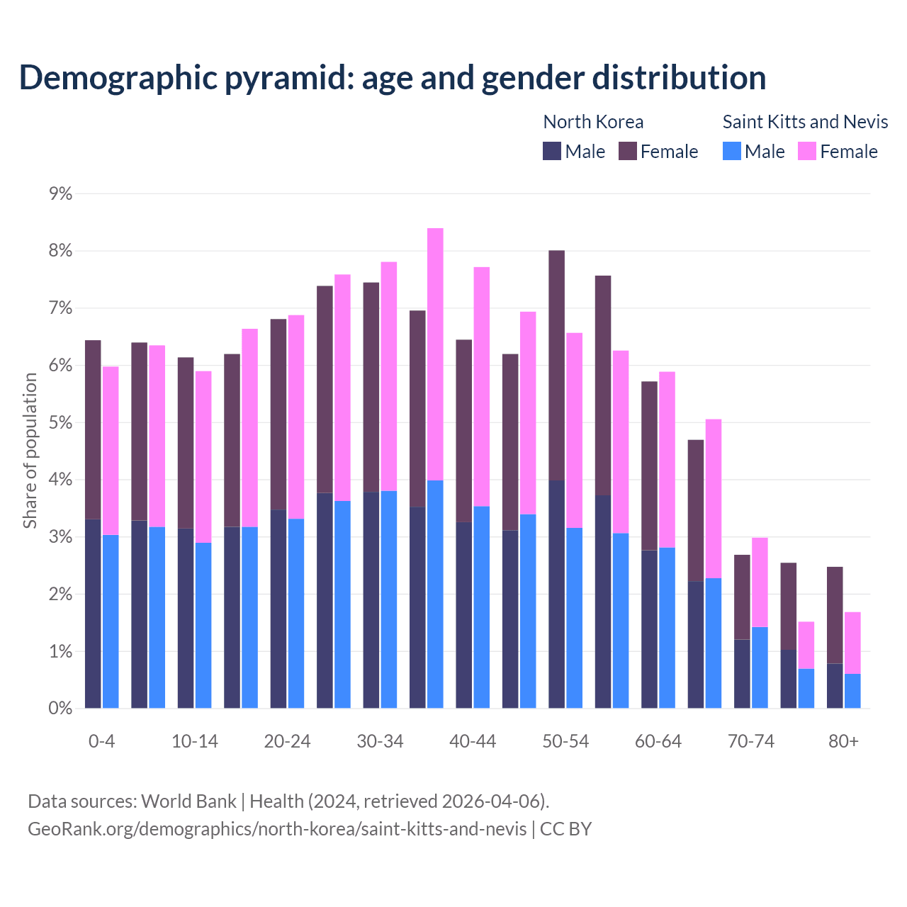 Demographics of North Korea compared to Saint Kitts and Nevis: