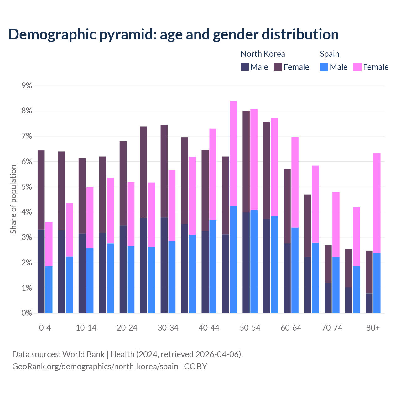 Demographics of North Korea compared to Spain: