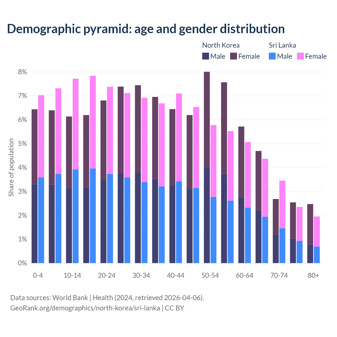 Demographics of North Korea compared to Sri Lanka: