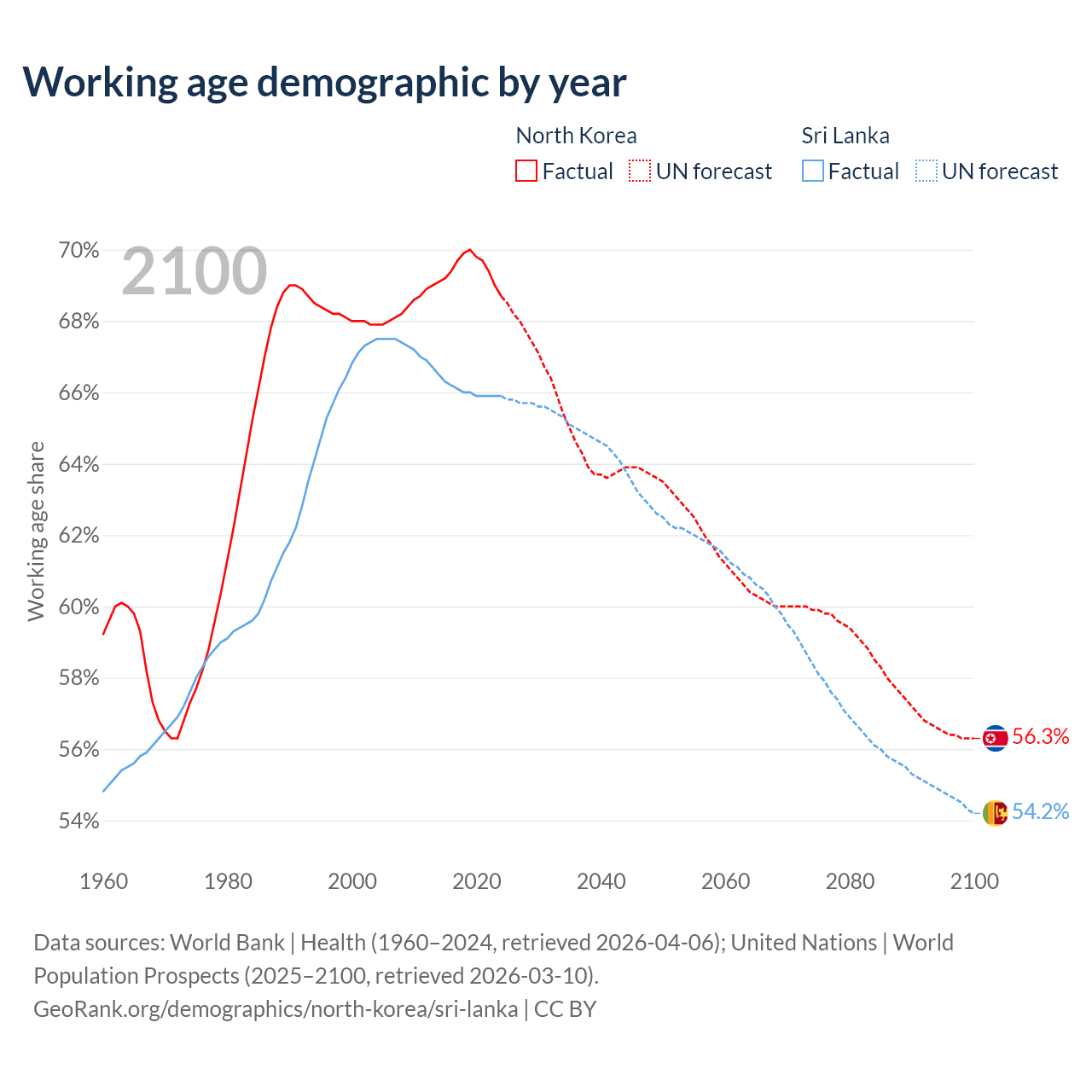 - North Korea has 18.3M working age adults (aged 15-64) vs 14.6M in Sri Lanka.