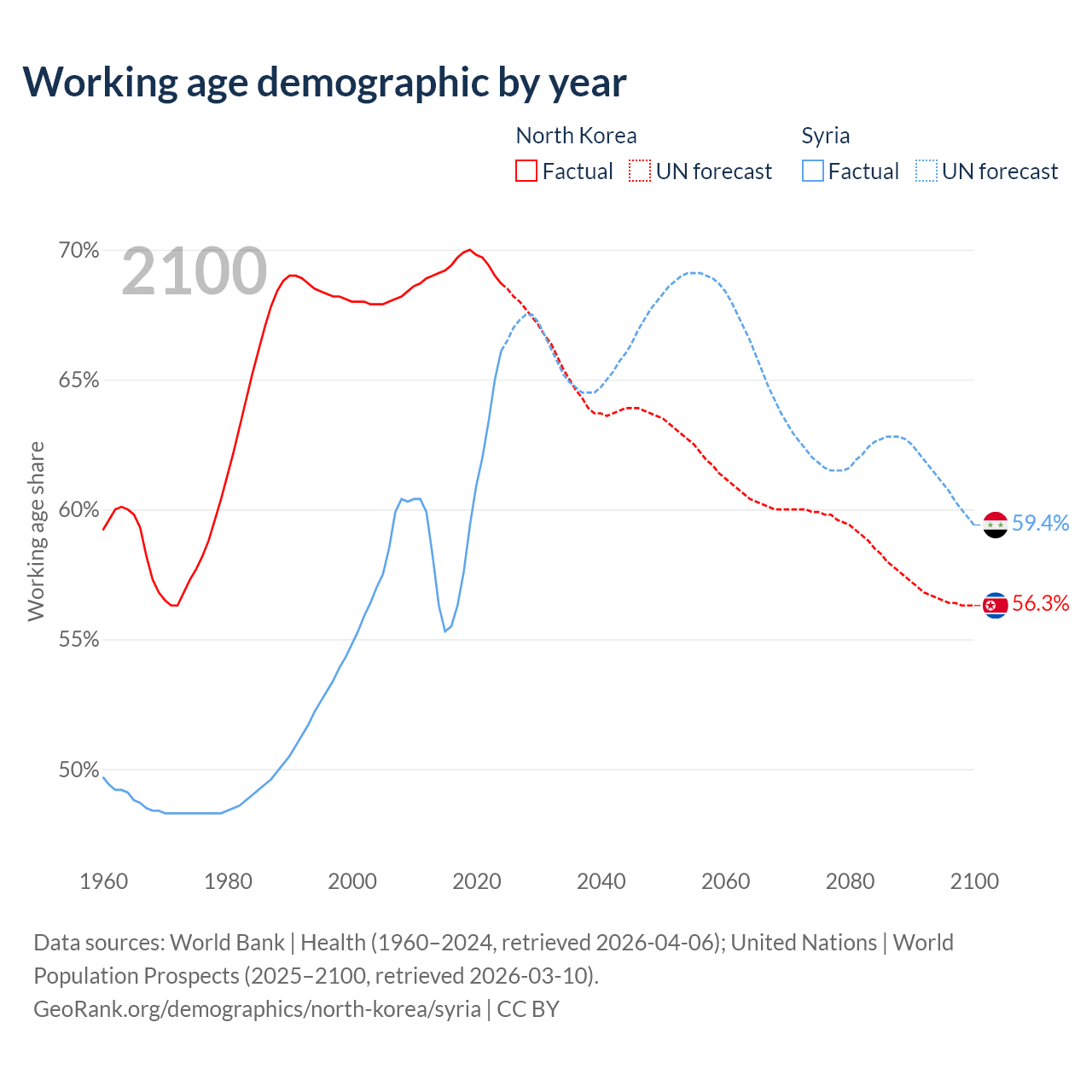 - North Korea has 18.3M working age adults (aged 15-64) vs 17.7M in Syria.
