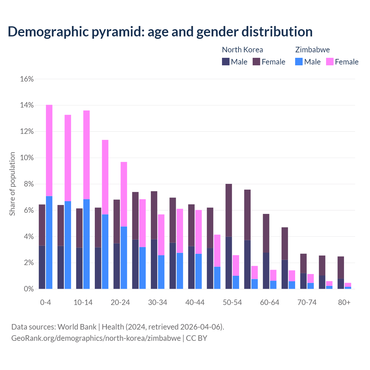 Demographics of North Korea compared to Zimbabwe: