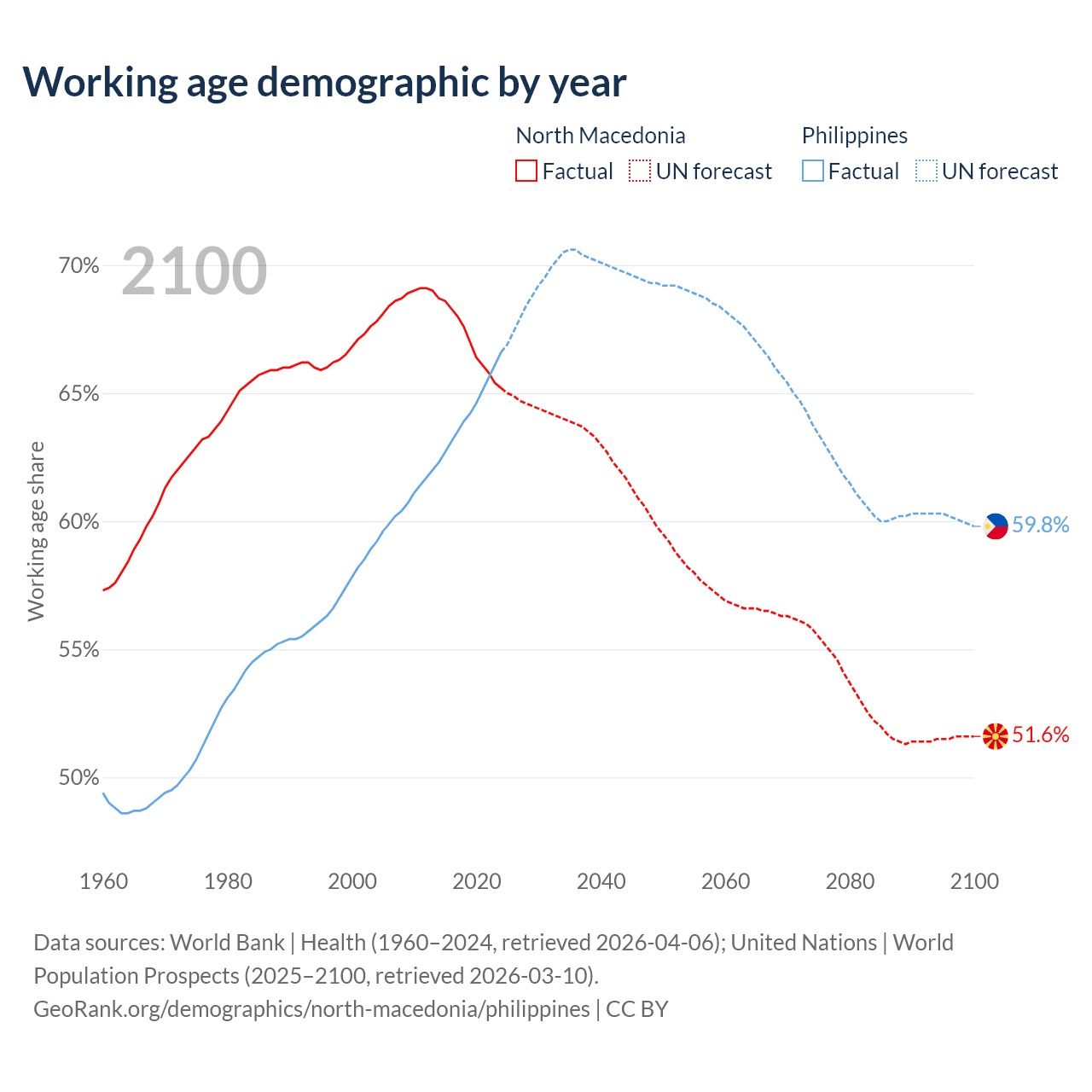 - North Macedonia has 1.18M working age adults (aged 15-64) vs 78.6M in the Philippines.